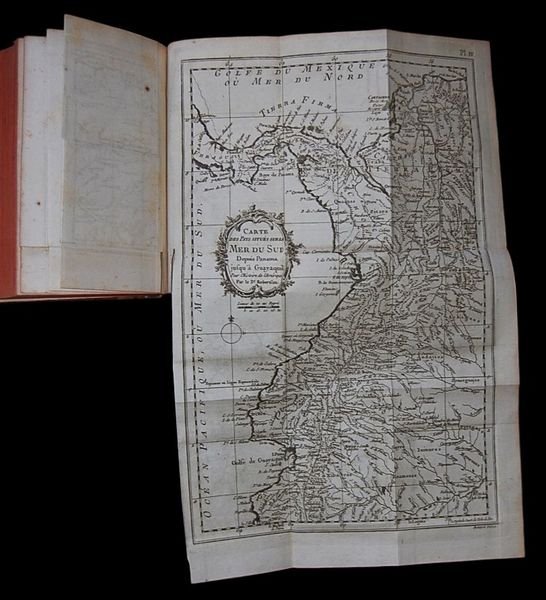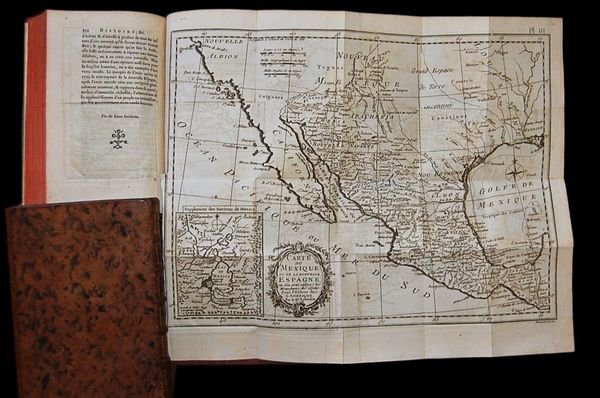 In 8°; tre tomi: (6), XXIV,407, (3) pp. e due grandi c. di tav. fuori testp più volte ripiegate, (6), 572, (2) pp., (6), 525 (la pagina 524 erroneamente numerata 224), (5) pp. e tre grandi c. di tav. fuori testo più volte ripiegate. Bellissime legature coeve in piena pelle marmorizzata con dorso 5 nervi e titolo, numero del volume (su pecette coeve in pelle rossa) e ricchi fregi in oro ai tasselli di ogni volume. Filetto in oro ai tagli dei piatti. Piatti interni foderati con bella carta coeva marmorizzata. Tagli rossi. Segnalibro in seta verde. Un piccolo forellino dovuto ad un difetto della della carta nella prima carta del golfo del Messico, anticamente integrato, al recto della stessa, con una piccola pecetta, praticamente ininfluente. Piccolo strappetto, senza perdita di carta, anticamente restaurato al margine interno della Carte de lAmerique Meridionale, ininfluente. Allinterno una decina di pagine minimamente arrossate a causa della qualità della carta utilizzata ma nel complesso esemplare in ottime condizioni di conservazione ed in bella legatura, di questa rara edizione della traduzione francese di una delle più importanti storie dAmerica pubblicata per la prima volta a Londra nel 1777. Questa dovrebbe essere la prima traduzione francese ma altre due edizione, una in due volumi e una in quattro volumi, uscirono nel corso del 1778. Lopera ebbe subito grande successo in Inghilterra e una nuova edizione uscì già nel 1778, una terza nel 1794. William Robertson nacque a Borthwick nel Midlothian nel 1721. E considerato con Hume e Gibbon uno dei tre grandi storici inglesi del XVIII° secolo. Figlio di un ministro presbiteriano e risiedette a lungo a Gladsmuir nellEast Lothian (1743-59). Dopo aver preso parte alle rivolte contro i giacobiti che infiammarono la Scozia negli anni quaranta del settecento. Nel 1751 divenne capo del partito moderato in seno allassemblea generale della Chiesa scozzese. Iniziò anche ad interessarsi attivamente alla storiografia pubblicando varie opere che ottennero subito un grande successo. Nel 1777 pubblicò il primo volume della History of America ma i moti che precedettero lo scoppio della Rivoluzione Americana lo indussero a rinunciare temporaneamente a terminare lopera che fu completata solo posteriormente. Dans cette histoire les faits de la conquête du Mexique et du Pérou y sont éclaircis et exposés avec une impartialité à laquelle les Espagnols eux-mêmes se plurent à rendre hommage, bien quils ny fussent pas ménagés P. Larousse. Very good copy.