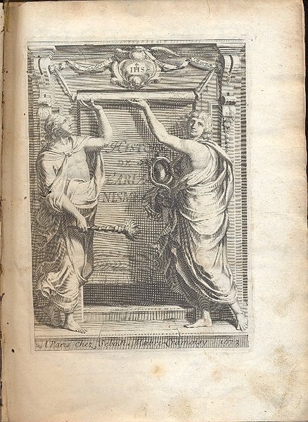 In 8°, p. pelle, cc.nn. 10 + pp. 651. Testatine, capilettere e finaline su pregevoli inc. Antip. con inc. a tutta p. Front. fig. Tagli spruzzati rossi. Nervi. Mende al d. e , meno importanti, ai piatti. Lieve gora su alcune pp. Appunti manoscritti sul front. Antichi forellini che interessano poche lettere. Disp. solo della prima parte che contiene i primi sei libri, su dodici, dell'opera.