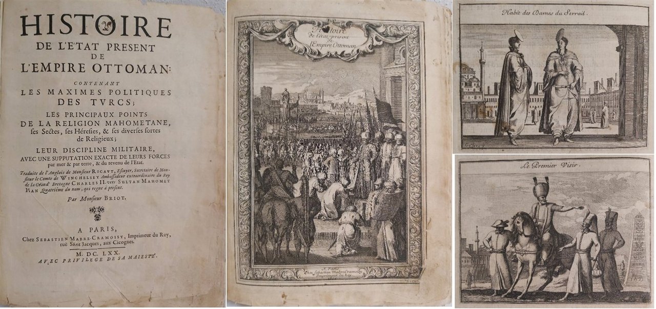 HISTOIRE DE L'ETAT PRESENT DE L'EMPIRE OTTOMAN contenant les maximes politiques des Turcs, les principaux points de la religion mahometane, ses sectes, ses Heresies & ses diverses sortes de Religieux; leur discipline militaire avec une supputation exacte de leurs forces par mer & par terre, & du revenu de l'Etat. Traduit de l'Anglois. par Monsieur Briot.