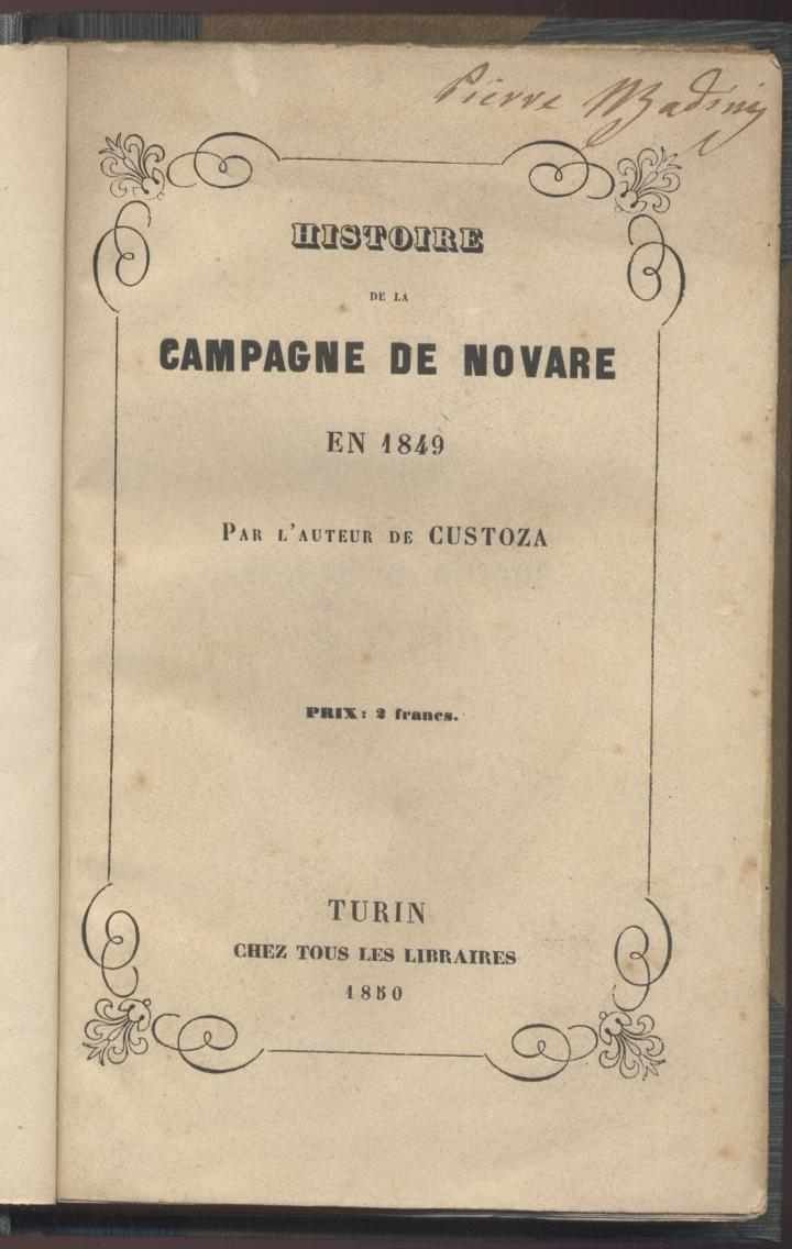 Histoire de la campagne de Novare en 1849 par l'auteur de Custoza