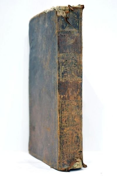 Tome 1 seul. VII. 447 pages. 4 planches illustrées. (20,5x13,5cm). Pleine basane. Dos lisse orné. Ornements dorés en ecadrement des plats. Gardes de papier marbré. Reliure très usagée. Dos très frotté et fendillé. Manques de cuir aux coiffes. Epidermures et frottements sur les plats. Quelques taches. Manques de cuir. Coupes raclées. Coins émoussés. Rares rousseurs à l'intérieur. Traces de mouillure sans gravité. Défauts d'usage. Bon état intérieur. Exemplaire relié dans une pleine basane de l'époque qui mérite une importante restauration. A l'intérieur: 1 carte sur le Monde connu des Anciens; 1 plan de Rome ancienne; 1 plan d'un camp romain; 1 plan de la formation militaire d'une armée romaine en bataille.