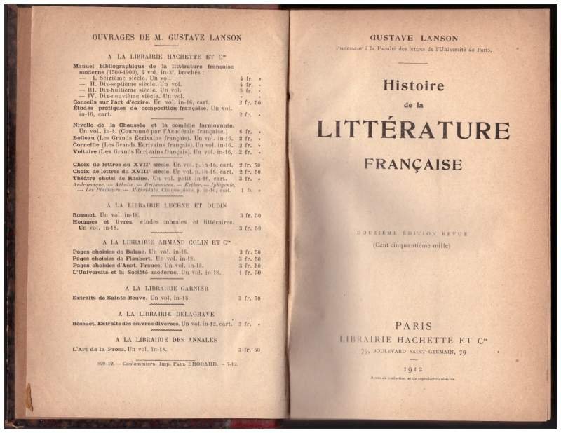 HISTOIRE DE LA LITTERATURE FRANCAISE douzieme édition revue (1912)