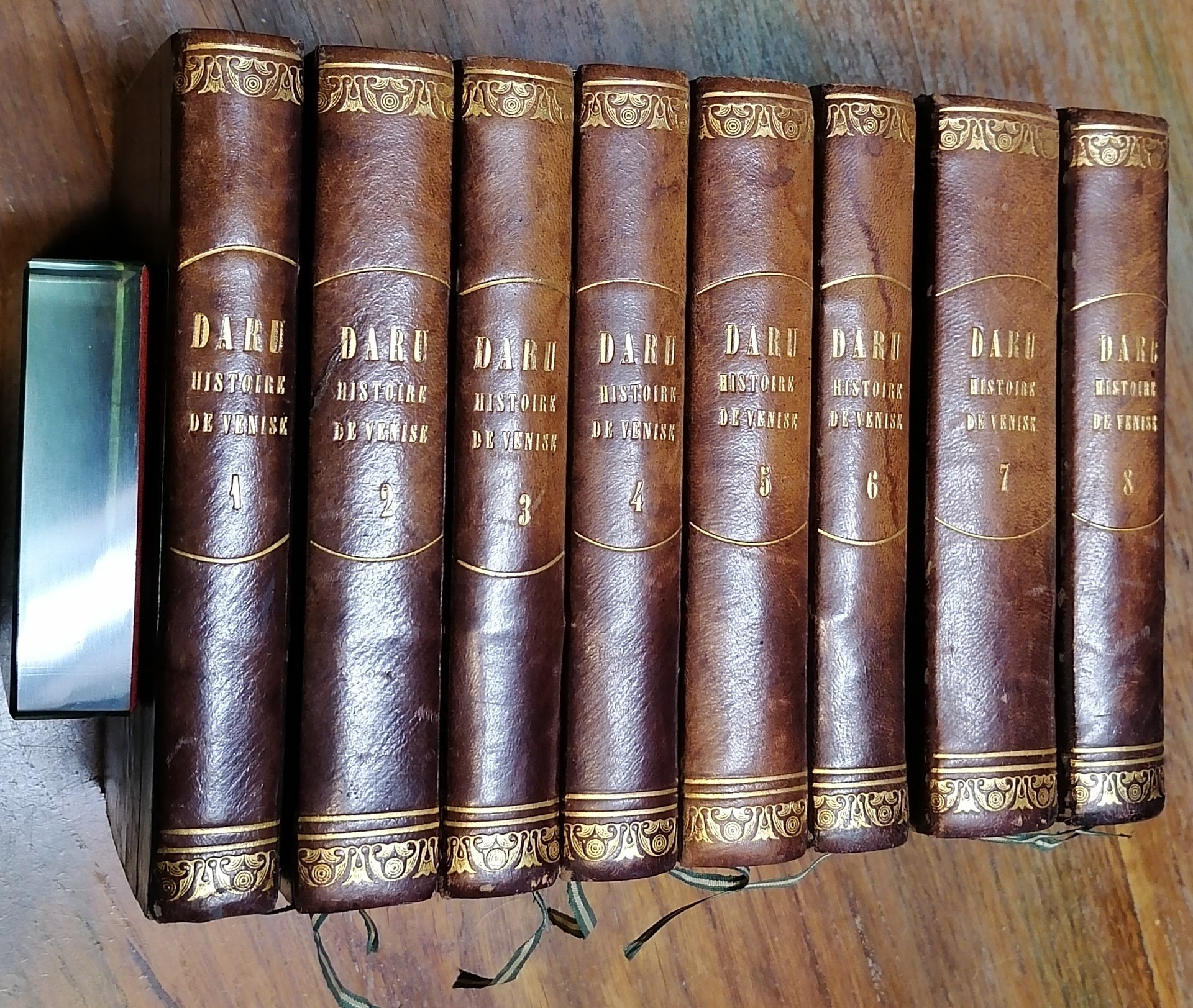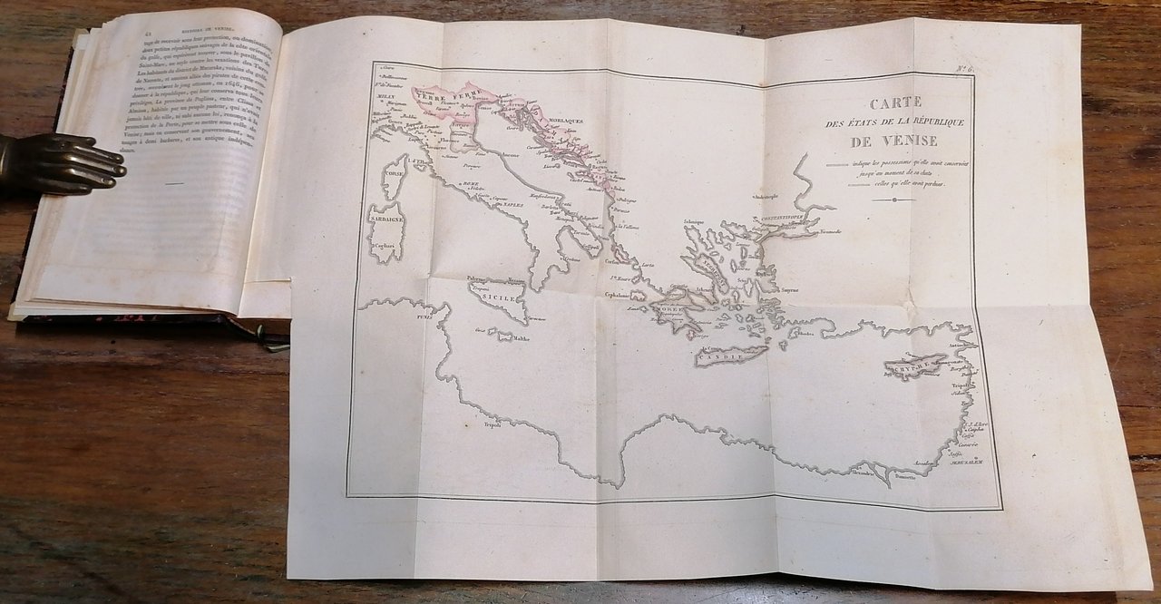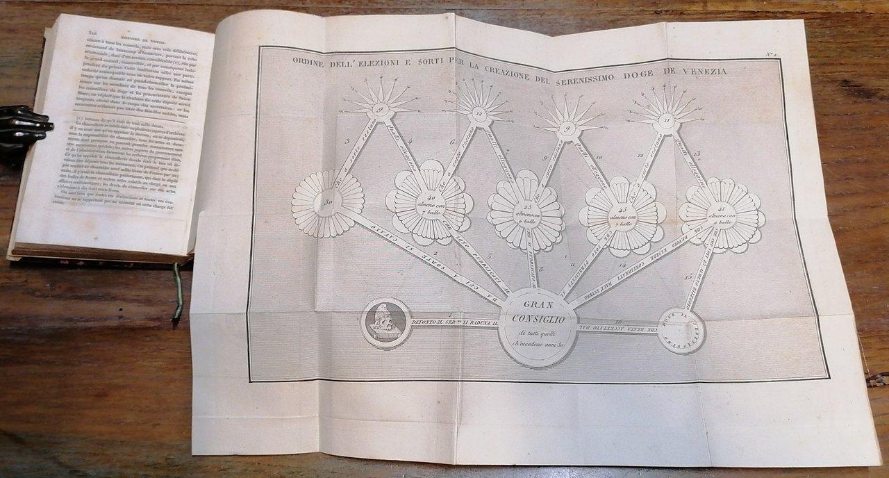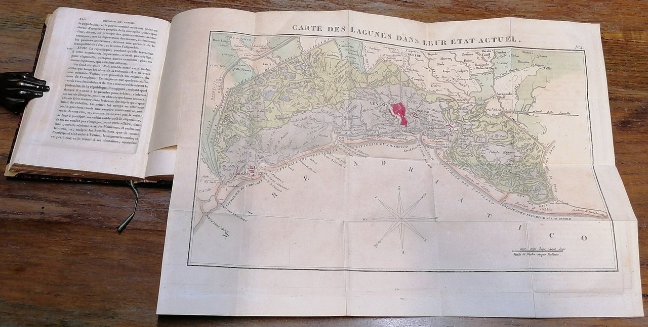 (Venezia; Repubblica; Storia; Laguna veneziana) Otto volumi in 16° (cm 15,5 x 10), legatura coeva in mezza pelle, ai dorsi titoli ed impressioni in oro, carta marmorizzata ai piatti, tagli spruzzati, pp. (4),352 ; (4),423,(1) ; (4),374 ; (4),370 ; (4),421,(1) ; (4),381,(1) ; (4),451,(1) ; (4),389,(1), con complessive 8 tavole più volte ripiegate fuori testo, alcune con rilievi a colore. Ex libris applicato al contropiatto anteriore in tutti i volumi. Leggera brunitura ad una carta, peraltro ottimo stato di conservazione.