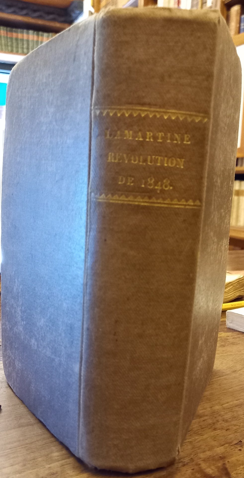 In-8 (19 cm) 2 voll. (4) 339 (1); (4) 365 (1). Occhietto con titolo: "Histoire de la revolution de 1848". Legatura in piena tela. Lamartine Alphonse Marie Louis Prat, de (1790-1869): poeta, scrittore e uomo politico. Fu nominato membro de L'Académie française nel 1829. Fu membro del governo provvisorio e Ministro degli affari esteri dal 1848. Nato a Mâcon e morto a Parigi.In-8 (19 cm) 2 vols. (4) 339 (1); (4) 365 (1). Half-title with title: "Histoire de la revolution de 1848". Full cloth binding. Lamartine Alphonse Marie Louis Prat, de (1790-1869): poet, writer and politician. He was made a member of L'Académie française in 1829. He was a member of the provisional government and Minister of Foreign Affairs from 1848. Born in Mâcon and died in Paris. French language. Lingua francese