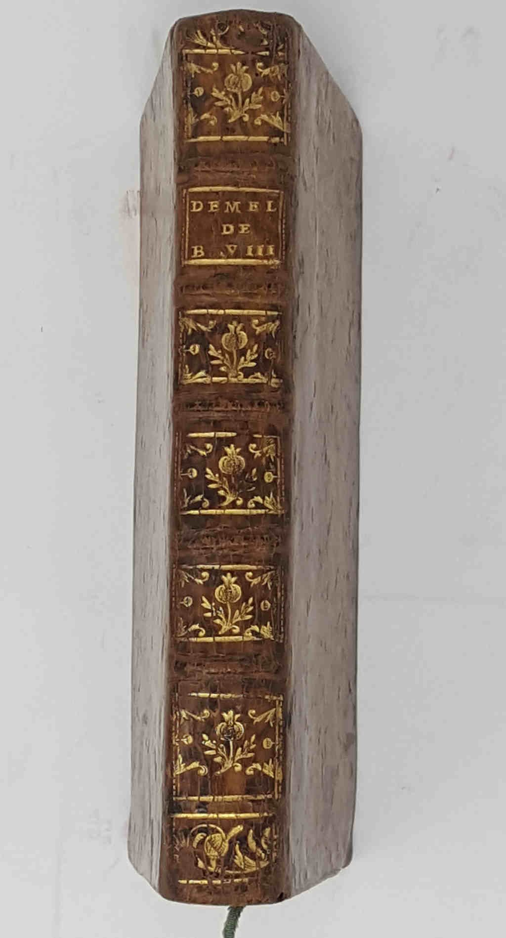>in-12 ( mm 167 x 94) pp. (4) 366 (1) Frontespizio in rosso e nero. Legatura coeva in piena pelle bazzana, titolo e fregi in oro su dorso a nervi. Tagli rossi. Due parti con numerazione continua. Seconda edizione riveduta e corretta, opera che ripercorre lo scontro tra Papa Bonifacio VIII e Re Filippo IV il bello. Ottimo esemplare (una macchia all'ultimo foglio), ex libris di biblioteca estinta al contropiatto anteriore e lunga nota di possesso in francese alla controsguardia posteriore.