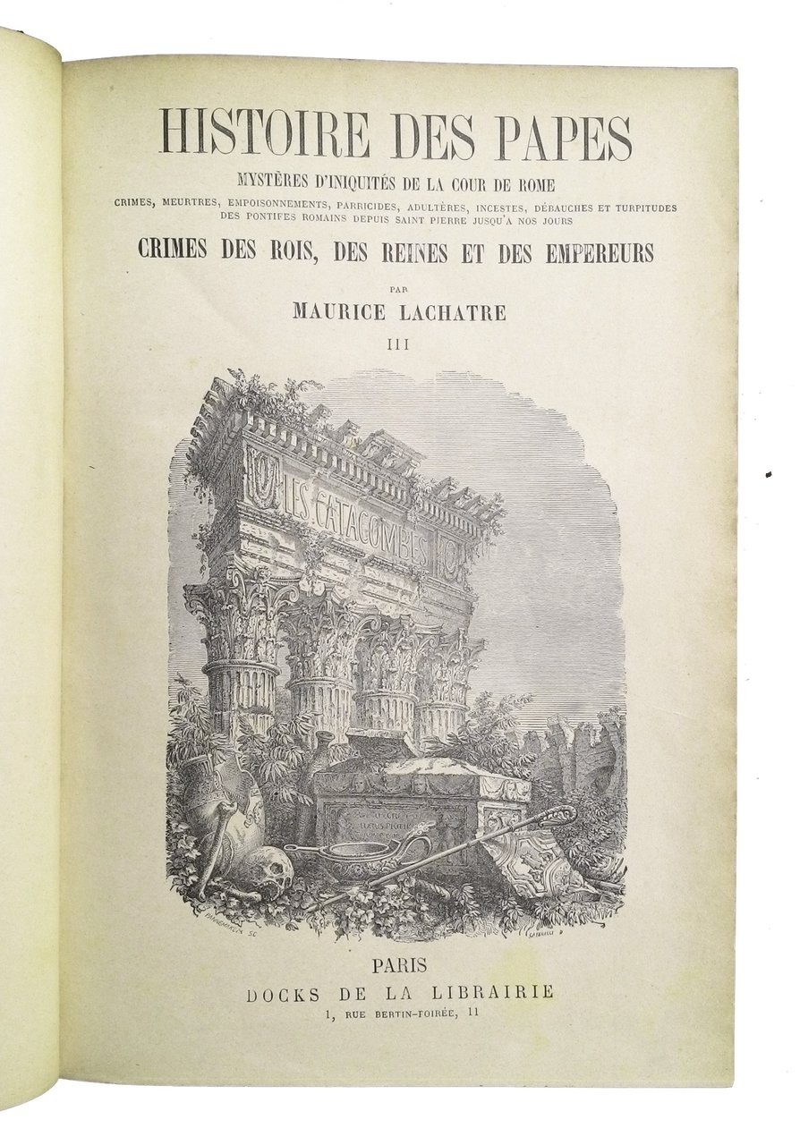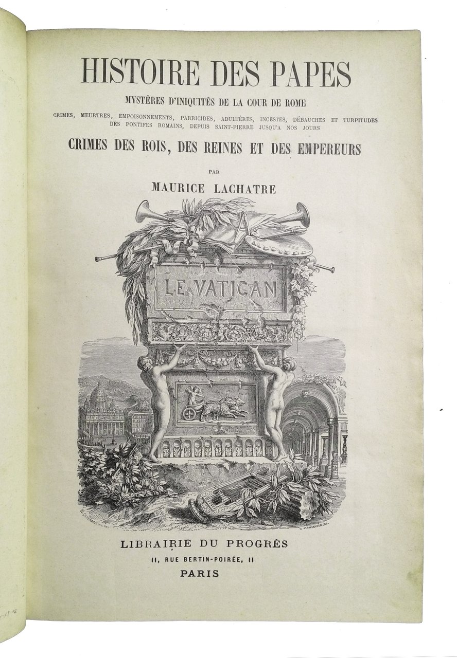 Histoire des Papes - Mystères d'iniquités de la cour de Rome - crimes, meurtres, empoisonnements, parricides, adultéres, incestes, débauches et turpitudes des Pontifes Romains, depuis Saint-Pierre juusqu'a nos jours - crimes des rois, des reines et des empereurs