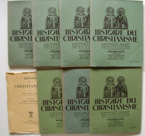 Ensemble des fascicules XIV à XXV et des Tables du Tome III, en 7 vol. in-4 br., Gabriel Beauchesne et ses Fils, Paris, 1938, VIII-1532 pp. + tables Bon exemplaire, bien complet de tous les fascicules consacrés aux Temps Modernes, en bon état. Dom Charles Poulet (1887-1950), bénédictin de Saint-Paul de Wisques et professeur à l'Institut Saint-Anselme (Rome), fut l'auteur notamment d'une Histoire de l'Eglise et de l'Histoire du Christianisme. Cette histoire du du Christianisme, publiée en fascicules, s'organisait en 4 tomes. Les fascicules proposés ici correspondent au Tome III et avant-dernier.