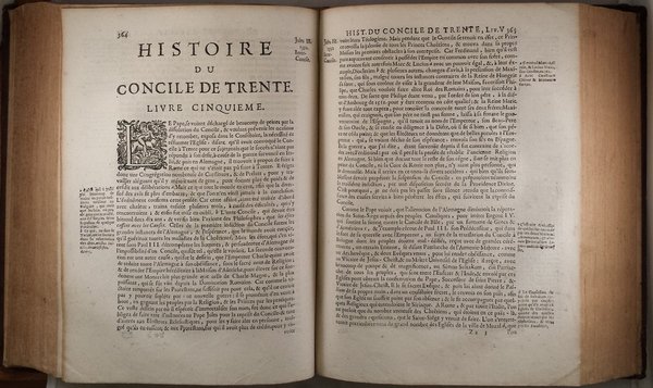 In-4 (24 cm) (48) 800 (48) marca editoriale al frontespizio (Sfera armillare: Indefessus agendo) e capilettera figurati. Legatura in piena pelle; tassello al dorso, caratteri e fregi in oro. Cuffia inferiore asportata e legatura lievemente usurata. Alcune fioriture e normali tracce d'uso. Frontespizio con restauro al margine bianco inferiore. Seconda edizione francese tradotta dal celebre Amelot de la Houssaie, ambasciatore francese a Venezia. Sarpi Paolo (Venezia 1552 - ivi 1623). Storico e teologo veneziano. Entrato a quattordici anni nell'ordine dei Servi di Maria, vi prese i voti nel 1568, divenne sacerdote nel 1574 e si addottorò in teologia a Padova. Con una folgorante carriera fu nominato provinciale e poi procuratore generale dell'ordine a Roma. Rientrato a Venezia nel 1588, vide bocciata la proposta della nomina episcopale in seguito ai sospetti della curia romana per le sue relazioni con esponenti del protestantesimo. Tra il 1606 e il 1607, durante il conflitto tra Venezia e il papa Paolo V, in seguito al tentativo veneziano di sottoporre gli ecclesiastici ai tribunali laici e di limitare la proprietà ecclesiastica, operò come consultore ufficiale del governo, scrivendo diversi opuscoli di polemica anticuriale nei quali manifestò posizioni vicine a quelle del gallicanesimo. Condannato dall'Inquisizione e poi scomunicato, rifiutò di sottomettersi; fu allora oggetto di un attentato, il cui autore tro vò rifugio nello Stato della chiesa. Nel 1619 uscì a Londra la sua opera più importante, l'Istoria del concilio tridentino, che venne subito tradotta in latino, tedesco, francese e inglese. In stile vivace vi si mostra la direzione papale del concilio volta a limitarne la libertà e a impedire la riforma della chiesa. Nonostante il complessivo taglio polemico, la moderna critica storica, pur equilibrando diversi giudizi, ha riconosciuto nel lavoro un'esattezza sorprendente dato l'allora impossibile accesso alle fonti vaticane. Collazionato e completo. French language. Lingua francese