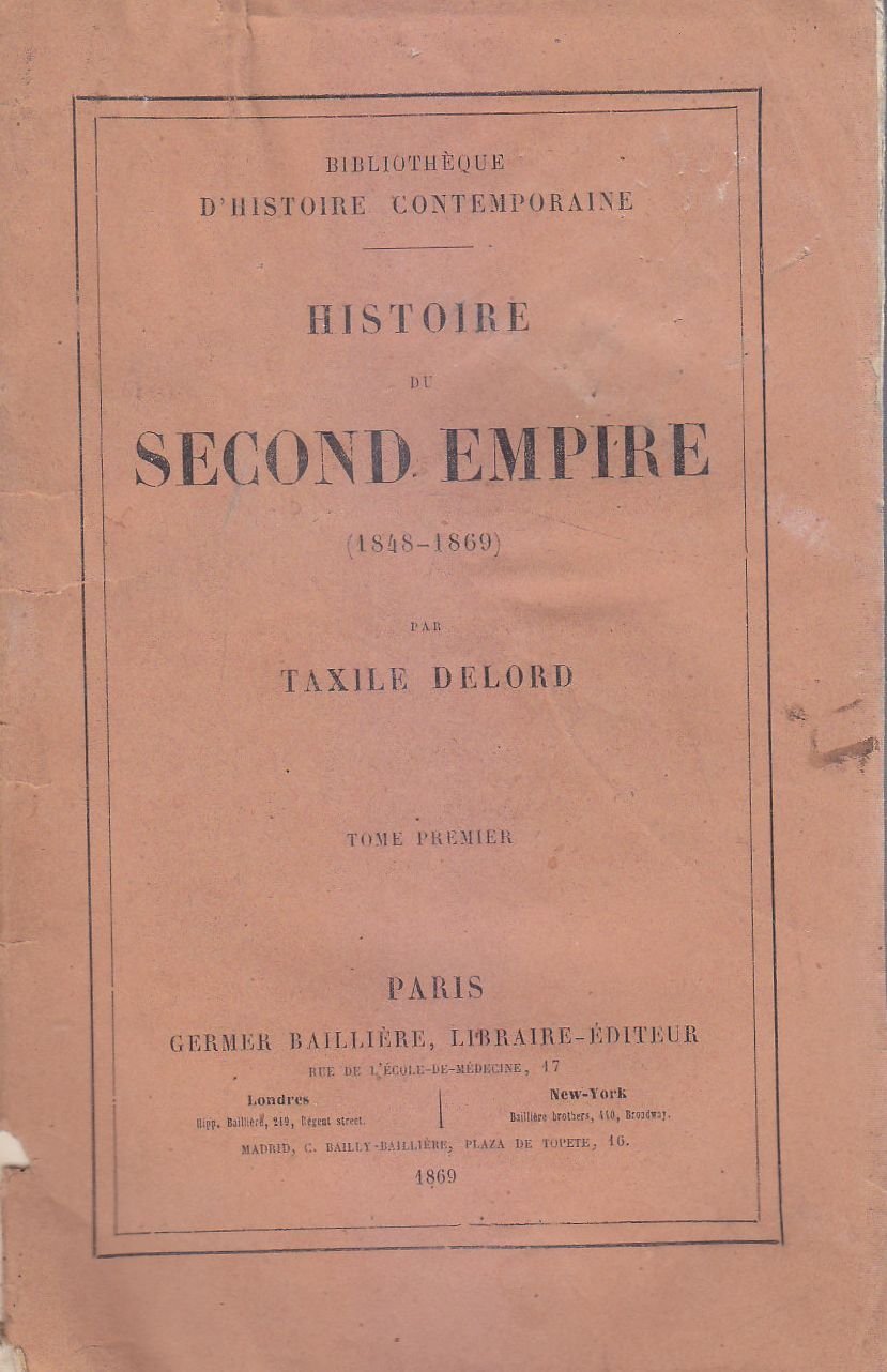 HISTOIRE DU SECOND EMPIRE 1848 1869 VOLUME I di Taxile Delord 1869 libro antico