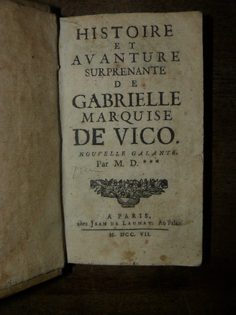 HISTOIRE ET AVANTURE SURPRENANTE DE GABRIELLE MARQUISE DE VICO. Nouvelle Galante. Par M.D.