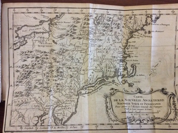 In-16 p. (mm. 170x100), 3 volumi, p. pelle bazzana coeva, dorso a cordoni (restaur.) con decoraz. e titolo oro su due tasselli, tagli rossi. Pubblicata in 80 volumi nel formato in-16, questa celebre raccolta di viaggi contiene "ce qu'il y a de plus remarquable .. dans les pays où les voyageurs ont pénétré.. Enrichi de cartes géographiques et de figures".Sono disponibili i volumi: 55-56-57: "Voyages & établissemens dans l'Amérique Septentrionale" dei francesi e degli inglesi; descrizione del Canada con le relazioni di diversi viaggiatori - Usi e costumi degli Indiani - Viaggi vari al Nord-Ovest e al Nord-Est per la scoperta di un passaggio alle Indie Orientali. I 3 volumi sono molto ben illustrati fuori testo (e completi come da Indice) da: 14 carte geografiche (Virginia e Maryland - Canada con Nuova York e Pensilvania - Carolina e Georgia - Luisiana e paesi limitrofi - parte del Canada - Baia di Hudson - corso del fiume S. Lorenzo (2 carte) - laghi canadesi - carta ridotta dei Mari del Nord - Nouvelle Hollande - parte del Mare Glaciale - carta ridotta delle parti settentrionali del globo (fra Asia e America) - lo Spits-Berg), tutte più volte ripieg. E da 9 tavole di cui 3 piante delle città di: Boston, Quebec e Nuova Orleans, più volte ripieg.: le restanti raffigurano usi, costumi, storia naturale, ecc., tutte inc. in rame.Qualche lieve e uniforme arross., peraltro esemplare ben conservato.