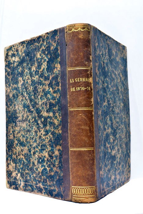 2 tomes en 1 volume. III. 365 pages. 2 cartes géographiques coloriées et dépliantes. + III. 119 pages. Nombreuses gravures in-texte. (24x17,5cm). Demi-basane. Plats en cartonnage couvert de papier marbré. Dos lisse titré en lettres dorées. Gardes de papier marbré. Epidermures et frottements sur le dos. Plats frottés et un peu usagés. Coupes élimées. Infimes rousseurs à l'intérieur. Cartes dépliantes dont une avec une importante déchirure. Exemplaire relativement frais bien relié dans une pleine basane qui mérite une restauration. L'intérieur est pourvu de portraits gravés in-texte, et de deux planches géographiques coloriées et dépliantes: 1). Paris et ses environs assiégés par les Allemands en 1870-1871. 2). La France occupée par les Allemands en 1870-1871.