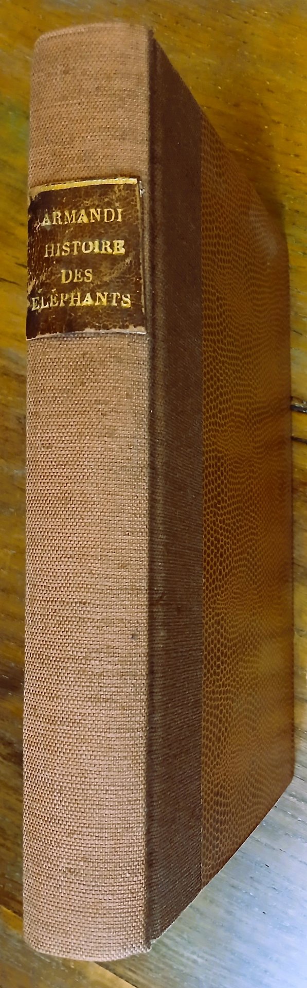 (Storia militare degli elefanti; Elefanti da guerra nell'antichità) In 8°, legatura non coeva in mezza tela, al dorso tassello in pelle con titoli in oro, pp. (4),XVI,570, con una tavola litografica in antiporta. Tracce di ossidazione alla tavola e lievi e circoscritte all'interno, peraltro volume solido e ben conservato. Pier Damiano Armandi nacque a Faenza nel 1778 da una famiglia originaria di Fusignano, fu ufficiale napoleonico e patriota risorgimentale, morì ad Aix in Savoia nel 1855.