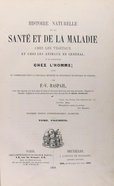 Histoire naturelle de la santé et de la maladie, chez les végétaux, et chez les animaux en général et en particulier, chez l’Homme ; suivie du formulaire pour la nouvelle méthode du traitement hygiénique et curatif.