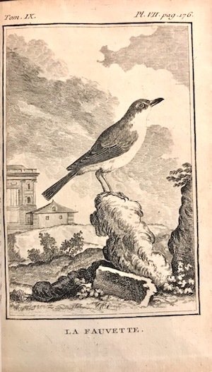 12mo (cm. 16,5), 10 Voll., 4 cc.nn., 352 pp.; 4 cc.nn., 351(1) pp.; 3 cc.nn., 417(1) pp.; 4 cc.nn., 405(1) pp.; XXIII-456 pp.; XII-246 pp., CLXXVII pp.; XII-430 pp.; XII-472 pp.; XV-418 pp., XLVI pp.; XIII-316 pp., XLVI pp. Con complessive 125 tavv. f.t. Legature coeve in piena pelle maculata con nervi, ricchi fregi e titoli su doppio tassello di diverso colore al ds. (qualche minimo difetto e alcuni forellini di tarlo ai dorsi).Carte di guardia marmorizzate. Ex libris di collezione privata ai contropiatti anteriori. Ottimo esemplare nel complesso. Solo questi primi 10 volumi (dei 18) della parte riguardante il mondo degli uccelli pubblicata all’interno dell’Histoire naturelle del Buffon pubblicata dalla Imprimerie Royale in 44 volumi tra il 1749 ed il 1804.