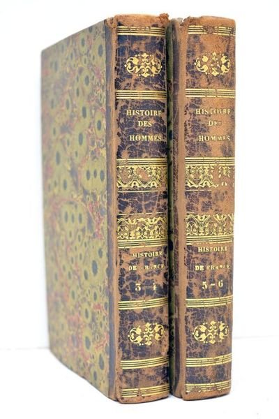 4 tomes en 2 volumes. Tomes 3-6. 303 pages. 300 pages. + 300 pages. 316 pages. (20x14cm). Demi-basane du temps. Dos lisse orné et titré en lettres dorées. Plats en cartonnage couvert de papier marbré. Gardes marbrées. Dos frotté. Coiffes élimées. Quelques rousseurs à l'intérieur. Très bon état général. Bel ensemble de deux volumes agréablement reliés dans une demi-basane du temp qui mérite une restauration au niveau du dos.