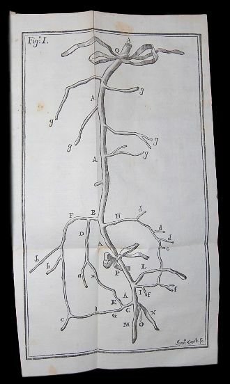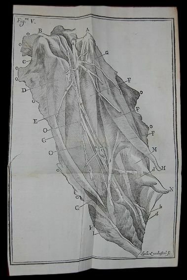 In 4° (23,5x17,5 cm); VIII, 31, (1) pp. e 4 c. di tav. fuori testo. Legatura coeva in piena pelle marmorizzata con dorso a 5 nervi e ricchi fregi ai tasselli. Qualche strofinatura e lieve difetto. Tagli spruzzati in rosso. Qualche lievissima brunitura, qualche leggerissimo alone e nel complesso,all'interno, esemplare in buone-ottime condizioni di conservazione. Prima assai rara edizione di questo importante studio del grande medico originario di San Bartolomeo Bagni (Novara), Guittani Carlo (1709-1773). Fu chirurgo presso l'Arciospedale romano di S. Spirito in Sassia dove ben presto sostituì Rattazzi, il quale insieme a G. P. Gai che reggeva la cattedra di chirurgia universitaria, erano i due chirurghi principali della Roma dell'epoca. Intorno al 1740 conobbe mons. Antonio Leprotti, archiatra pontificio, che lo introdusse nel suo salotto dove si incontravano tutti i più famosi medici romani del tempo. Nel 1742, alla morte di Gai, prese il posto di quest'ultimo come chirurgo primario e lettore di anatomia e chirurgia dell'Ospedale. Poco dopo stessa carica gli venne affidata nell'ospedale di S.Gallicano, in Trastevere. Ricoprì anche il ruolo di chirurgo del tribunale del governatore. "Nel 1745 pubblicò, nella forma della historia ippocratica, il resoconto di due casi clinici esemplari riguardanti gli aneurismi (Historiae duae aneurysmatum, quorum alterum in brachio per chirurgicam operationem sanatum, in femore alterum paucos intra dies lethale fuit, Romae 1745, ristampato poi nella raccolta De externis aneurysmatibus, ibid. 1772, pp. 135-194); a chiarire e perfezionare le metodiche di intervento su tali affezioni vascolari il G. dedicò poi gran parte della sua carriera di chirurgo." Quest'opera è considerata una delle prime e più importanti descrizioni di operazioni chirurgiche eseguite su casi di aneurisma. Dal 1746 fu inviato dal Governo Pontificio a Parigi per studiare le ultime tecniche mediche di ostetricia e litotomia. Qui si distinse talmente che ben presto gli venne chiesto di diventare socio nell'Académie Royale de chirurgie, istituita quattro anni prima, e divenne corrispondente dellAcadémie Royale des Sciences. Nel 1747 fu medico di campo al seguito delle armate francesi impegnate nella guerra delle Fiandre acquisendo enormi conoscenze nelle cure delle ferite da armi da fuoco. Ritornato da Parigi acquistò le più moderne apparecchiature mediche per l'ospedale del S. Spirito facendone uno degli ospedali più avanzati della penisola italiana. In questo anno viaggiò molto per l'Italia dove conobbe alcuni dei più celebri medici e chirurghi del tempo come Morgagni, Bertrandi e Moscati. Nel 1748 rientrato definitivamente a Roma si diede all'insegnamento ed entra a far parte del Collegio degli archiatri pontifici prima come chirurgo soprannumerario di Benedetto XIV e poi, sotto il pontificato di Clemente XIII, come chirurgo segreto del papa. "Nella pratica giornaliera orientava gli allievi verso la semplificazione delle medicazioni, secondo l'orientamento prevalente nella medicina illuministica; l'esperienza parigina aveva inoltre rafforzato nel G. l'idea che una chirurgia affrancata dalle origini "meccaniche" dovesse rivendicare l'esclusiva di tutte le operazioni (litotomia, cataratta, siringatura delle urine) per le quali empirici e professionisti, come "norcini" e "preciani", continuavano a detenere privilegi e incarichi ospedalieri. Nel 1751 il G. ottenne dalla direzione del S. Spirito che la qualifica di litotomo e gli insegnamenti pratici relativi fossero uniti al ruolo del primariato, consentendo in tal modo che quelle operazioni divenissero patrimonio stabile della professione chirurgica.". Prima rara edizione di importantissimo studio medico.