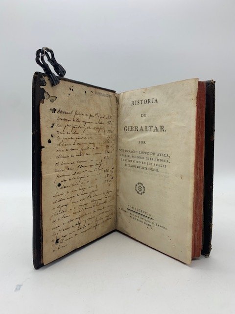 In 8 (cm 13,5 x 21), pp. XVI + 387 + (1 di errata) + XXXVI con 1 tavola finale piu' volte ripiegata. Un paio di strappi riparati alla tavola. Lieve danno all'angolo inferiore esterno del piatto posteriore. Annotazioni manoscritte in lingua spagnola alla prima e all'ultima carta di sguardia. Legatura ottocentesca in piena pelle con nervi al dorso. Edizione originale di questo saggio storico su Gibilterra del cronista spagnolo Ignacio Lopez De Ayala (1739-1789). "Ignacio Lopez de Ayala's Historia de Gibraltar (Madrid, 1782) nonetheless remains a standard reference for any study of eighteenth century Gibraltar; an English translation (by James Bell) was published in 1845" (Grocott, Stockey, "Gibraltar. A Modern History", 2012, p. 162).