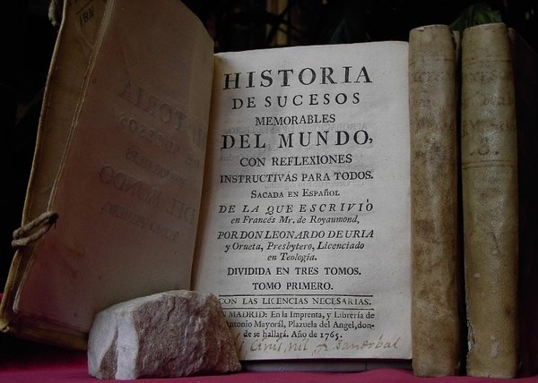 HISTORIA DE SUCESOS MEMORABLES DEL MUNDO, con reflexiones instructivas para todos. Sacada en Espanol de la que escrivio en Francs Mr. de Royaumond, por Don Leonardo De Uria . Dididida en Tres Tomos. Tomo I, II, III.