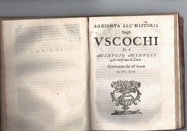 In 16°, br. muta posticcia, pp. 63. UNTIO: Aggionta all'historia degli Uscochi. Continuata fin' all'Anno 1613, pp. 58. Risultano mancanti le pag. 53/56. UNITO: Supplimento dell'historia degli Uscochi, pp. 58. Antichi forellini che interessano alcune lettere e/o parole.
