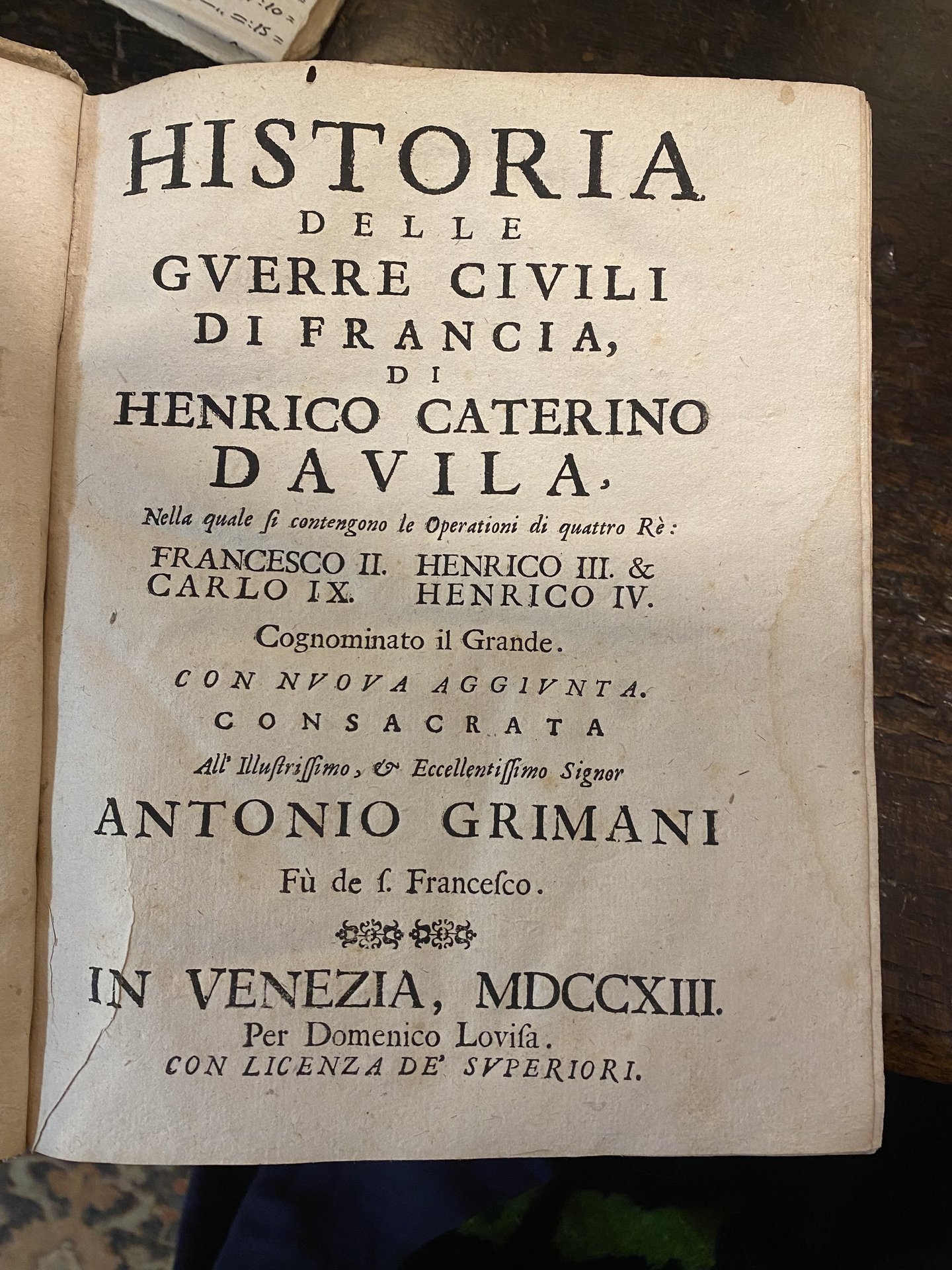 Historia delle guerre civili di Francia di Henrico Caterino Davila nella quale si contengono le operazioni di quattro re: Francesco II, Carlo IX, Enrico III & Henrico IV cognominato il Grande