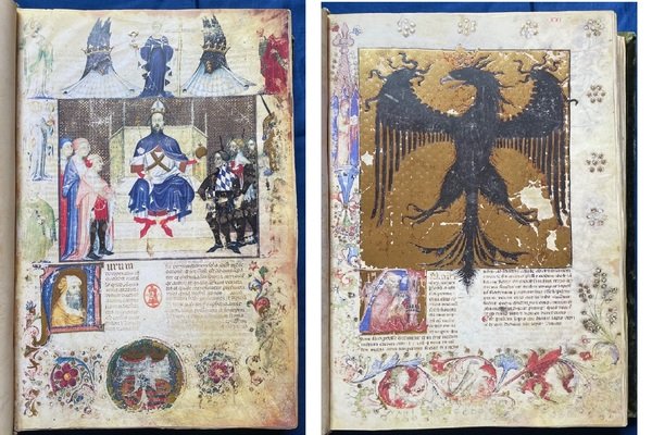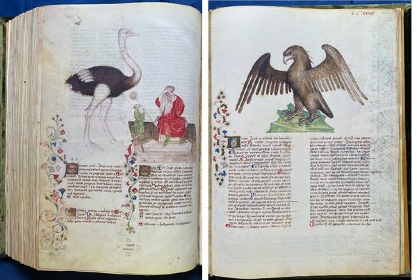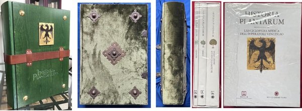 Historia Plantarum (Tacuinum Sanitatis). Roma, Biblioteca Casanatense, Ms. 459. Editore Franco Cosimo Panini. Realizzato come dono per Venceslao IV, re di Boemia e Germania dalla corte Gian Galeazzo Visconti, il manoscritto di 295 carte, ordinate alfabeticamente, contiene più di 500 illustrazioni di piante che forniscono l’alto livello di conoscenza della botanica alla fine del Medioevo. Completano l’opera ottanta immagini di animali e di circa trenta di derivati di minerali con numerose illustrazioni di vita quotidiana. Il facsimile è custodito in una scatola in legno con cinghia di chiusura in pelle. Commentario in due volumi (pagine 503+287) e un CD-ROM con numerose illustrazioni a colori, in cofanetto (formato 32x46 cm.). Tiratura limitata e numerata a 750 esemplari.