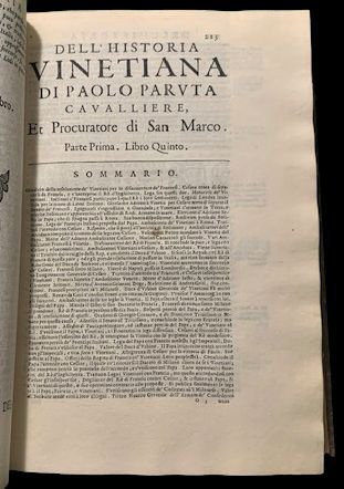Historia vinetiana di Paolo Paruta cavaliere, e procuratore di S. Marco. DiVisa in due parti. In questa nostra impressione aricchita delle postille marginali, e degli argomenti à ciascun libro. La seconda parte con frontespizio proprio: