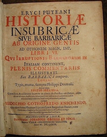 Historiae Insubricae sive barbaricae ab origine gentis ad Othonem Mag. Imp. Libri VI. qui irruptiones Barbarorum in Italiam continent, plenis commentariis illustrati.