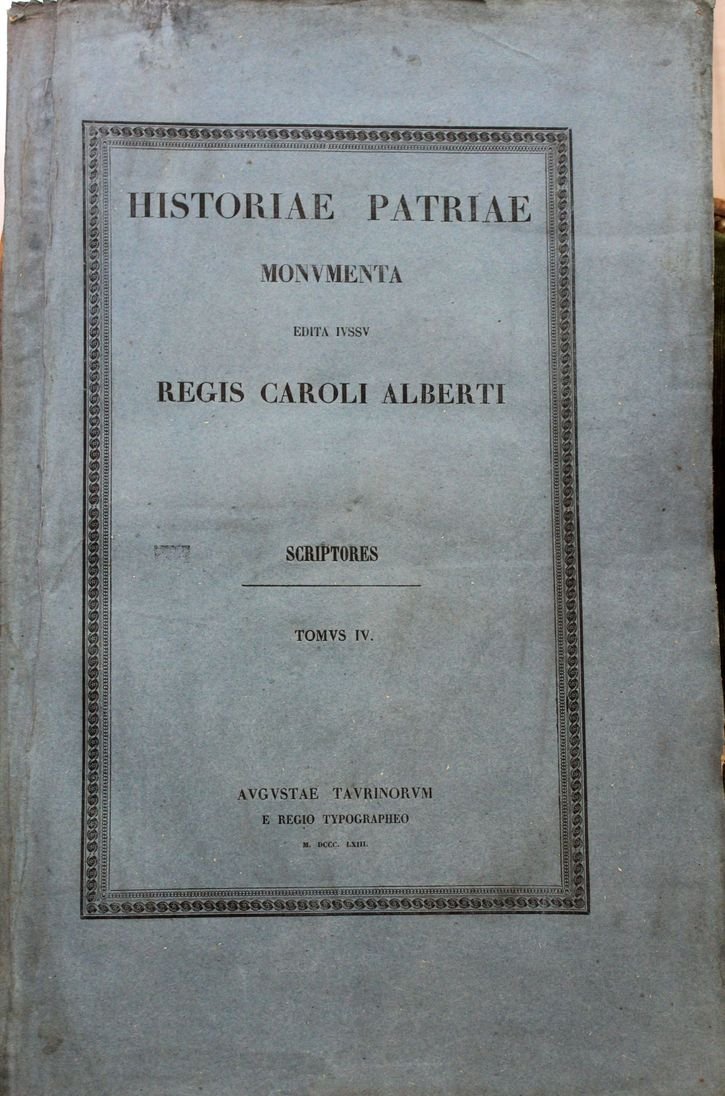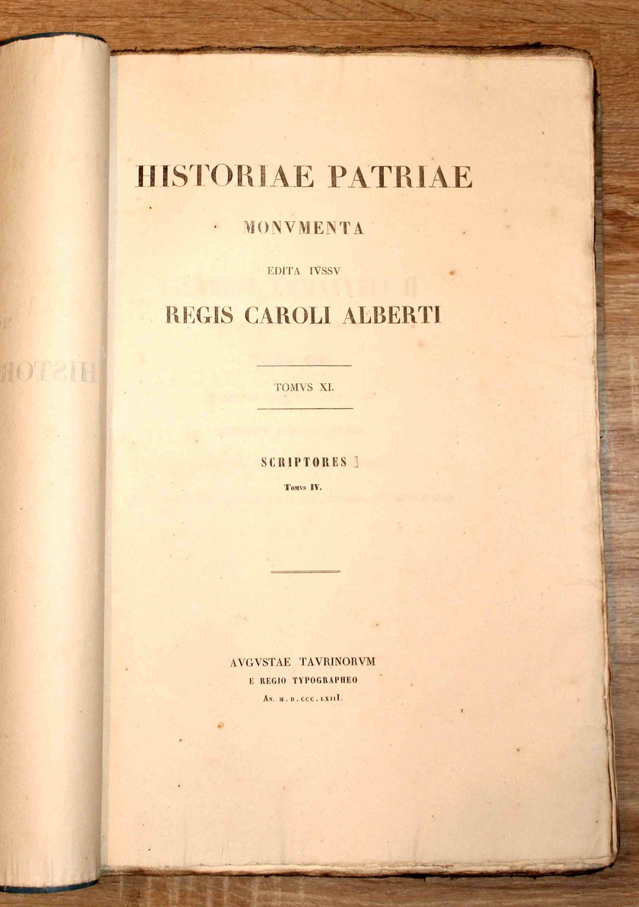 Historiae patriae monumenta edita iussu regis Caroli Alberti. Tomus XI. Scriptores, IV. Contiene: Guglielmino Schiavina, Annales alexandrini - Giuseppe Francesco Meyranesio, Pedemontium sacrum