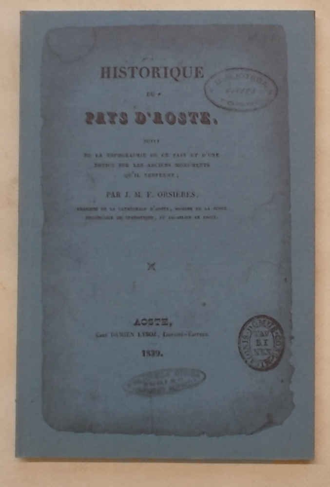 Historique du Pays d'Aoste suivi de la topographie de ce pays et d'une notice sur les anciens monuments qu'il renferme.