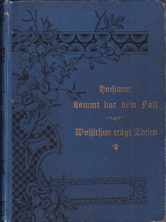 • Blaue Original Leinwand mit schwarzgeprägtem verziertem Rückentitel, Deckel-Verzierung und goldgeprägtem Deckeltitel.