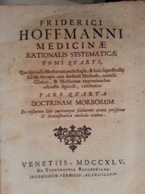 HOFFMANN FRIEDRICH MEDINAE RATIO.SYSTEMATICAE T.4 P.4 TIP. BALLEONIANA 1745