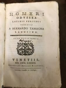 HOMERI ODYSSEA LATINIS VERSIBUS EXPRESSA A BERNARDO ZAMAGNA RAGUSINO. PRIMA EDITIO VENETA