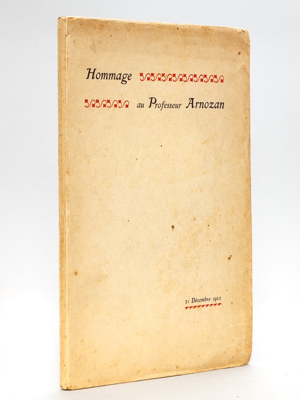 1 vol. in-4 br. sous couv. rempliée, Imprimerie Gounouilhou, Bordeaux, 1922, 82 pp. Etat satisfaisant (couv. frottée, bel état intérieur) pour ce rare ouvrage édité à l'occasion du "cinquantenaire scientifique" du professeur Xavier Arnozan (1852-1928), à l'occasion de sa dernière leçon. Peu courant.
