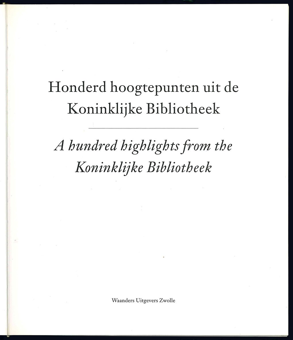 Honderd hoogtepunten uit de Koninklijke Bibliotheek. A hundred highlights from the Koninklijke Bibliotheek.