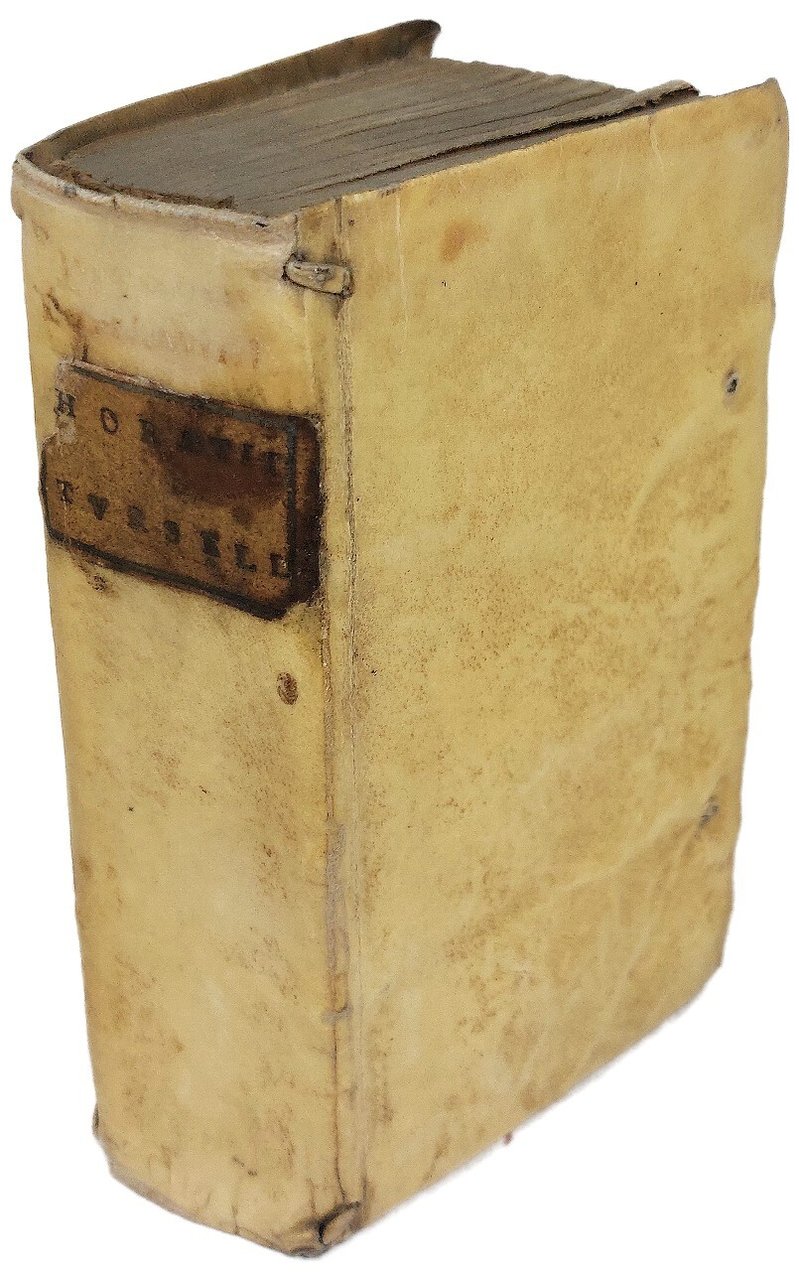 >in-12, pp. (24), 640, (68), frontespizio inciso, iniziali e finalini. Legatura coeva in pergamena floscia, titolo su tassello al dorso. Orazio Torsellini (1545 - 1599) fu prolifico letterato e storico, le cui opere fino impresse ancora nel '700. Graziosa e piccola edizione del compendio di storia universale dalla creazione del mondo fino alla fine del XVI secolo, prima edizione in 10 libri. Esemplare con lieve uniforme brunitura e forellino di tarlo al margine interno di alcuni fascicoli, al margine del frontespizio ex dono ms. degli editori.