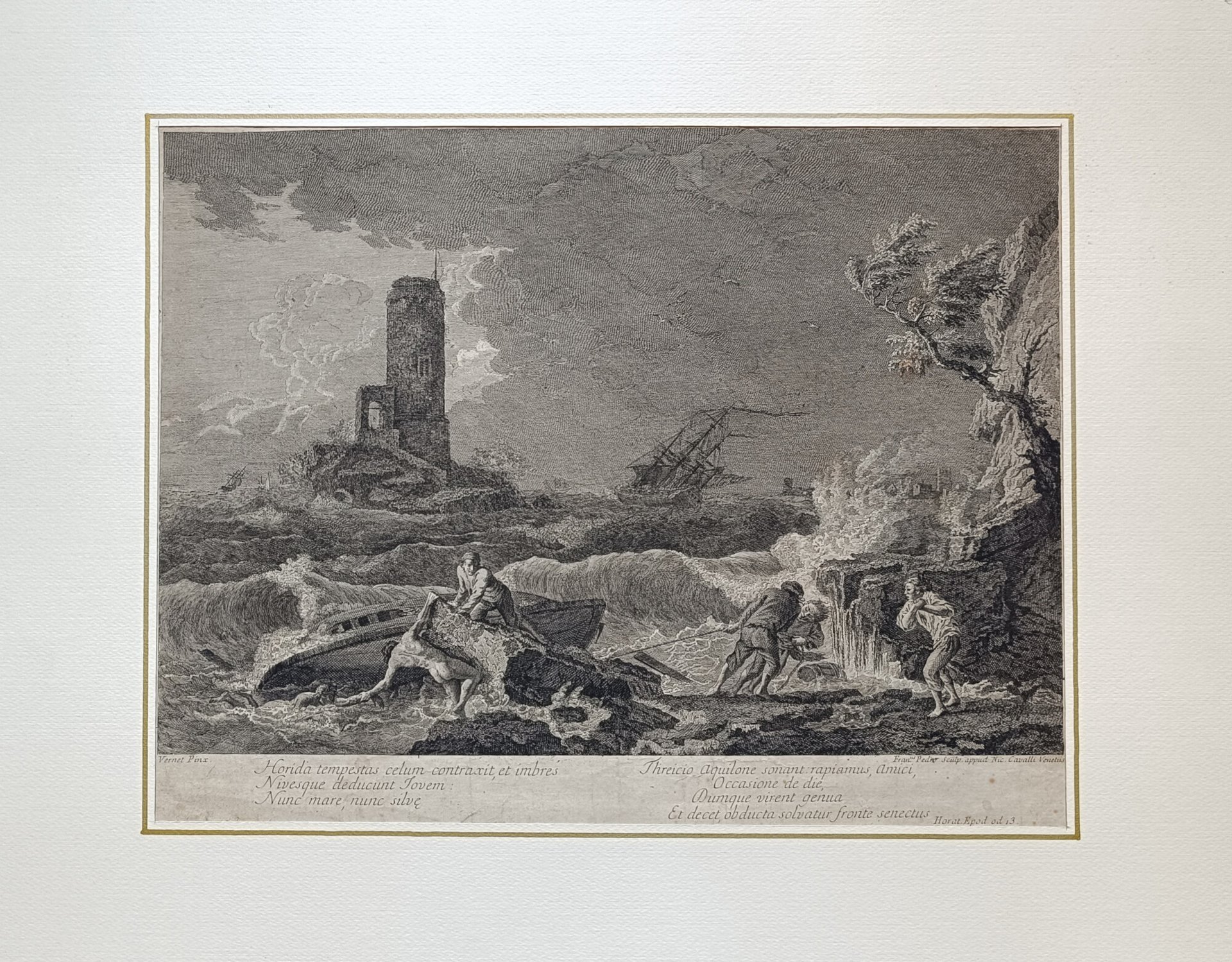 Da soggetto di Vernet. acquaforte inciso cm. 43,2 x 33,2 - foglio cm. 44,7 x 34,5 Buono (Good) Buon es., lievi segni del tempo (due piccoli antichi restauri sul retro non visibili al verso), restauro sul retro.