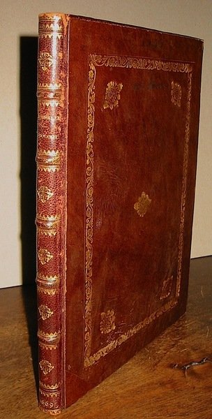 4to (cm. 21,8), 155 pp., 2 cc.nn. con 16 ill.ni in xilografia a piena pagina. Frontis. entro cornice ornamentale. Fregi e capilettera. Legatura ‘à l’imitation’ in piena pelle con nervi, ricchi fregi e titolo impresso in oro al ds. Cornici e fregi floreali ai piatti. Carte di guardia marmorizzate. Lievi aloni ed un piccolo timbro a secco su carta applicata al frontis. Modeste fenditure marginali su due carte. Nel complesso, bell’esemplare. Rara edizione originale di una ricercata opera italiana di orologeria. Riccardi I, 123.