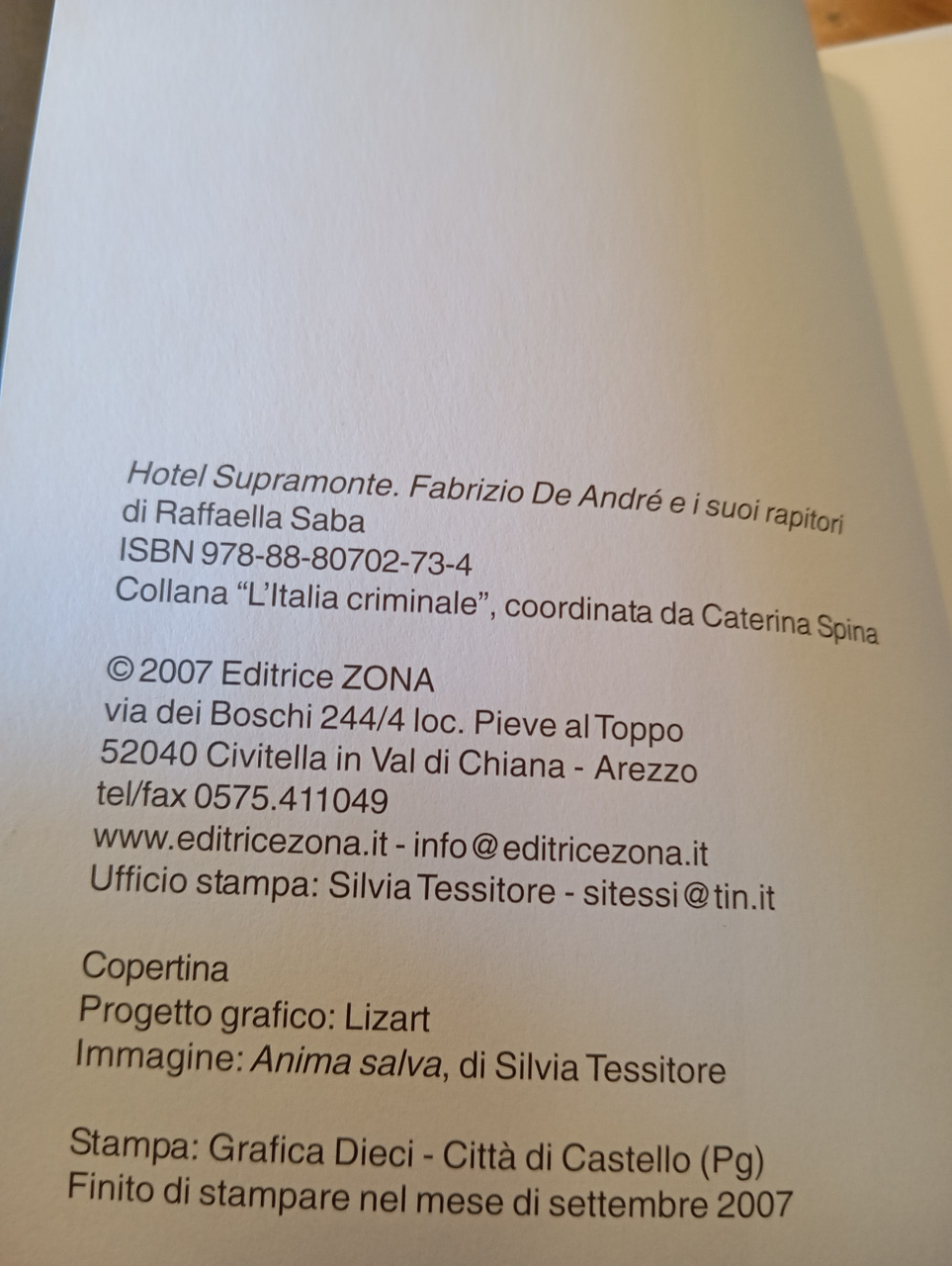 Hotel supramonte. De André e i suoi rapitori, Raffaella Saba, Zona, 2007