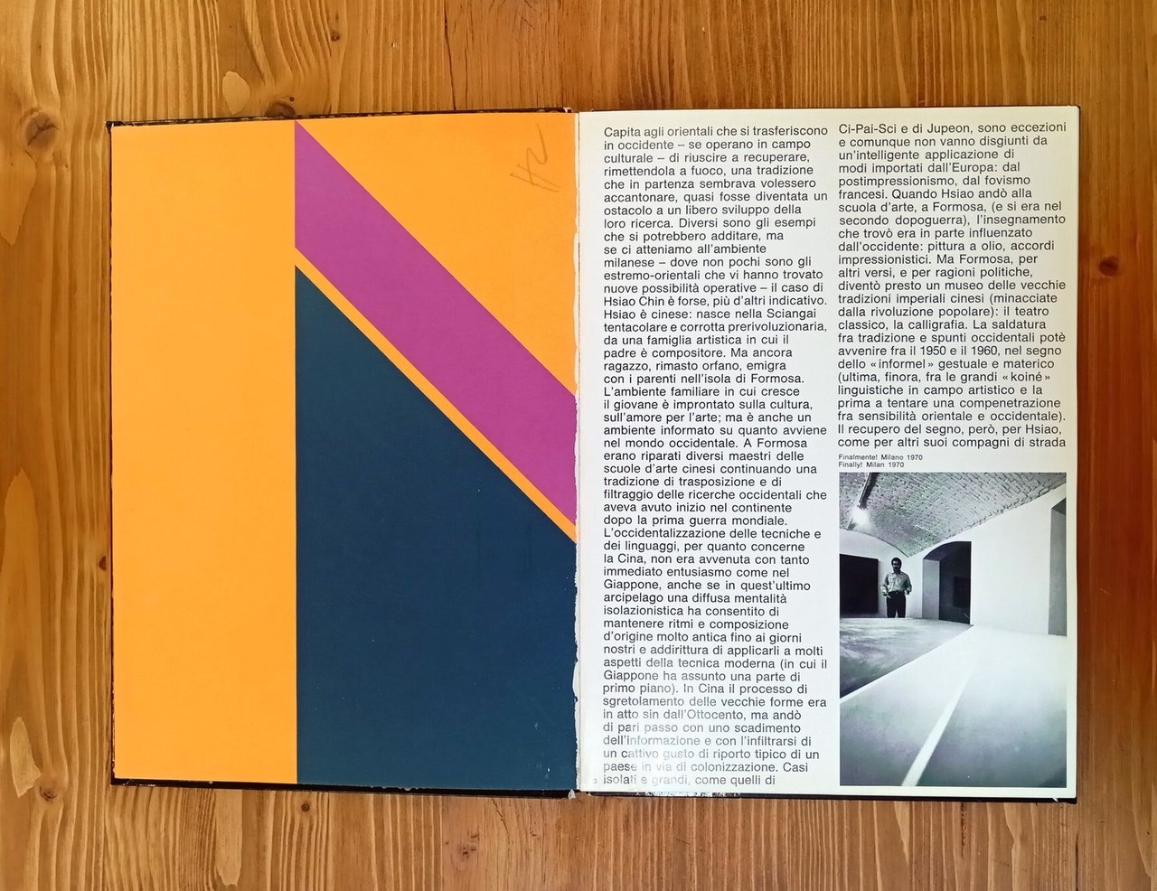 Prima edizione / First Edition. Collana "Primo Regesto". Include 2 LITOGRAFIE A COLORI firmate dall'Artista / Includes 2 COLOUR LITHOGRAPHS signed by the Artist - Volume in copertina rigida, 52 pagine illustrazioni a colori e in bianco e nero, oltre alle due litografie originali, una delle quali a doppia pagina (cm 28x19 e 28x38). Note biografiche. Testo in italiano e inglese / Italian and English text. Monografia del lavoro eseguito dal 1969 al 1972. Dorso danneggiato con restauri, interno ben conservato; edizione non comune -- Hsiao Chin nasce a Taipei nel 1935. Fonda il gruppo Ton-Fan nel 1956, movimento che raccoglie pittori di tendenza astratta. Alla fine degli anni '50 si trasferisce a Milano, dove inizia una stretta collaborazione con lo Studio Marconi prima di trasferirsi a Milano alla fine degli anni '50. Frequenta il gruppo di artisti che orbitava attorno al bar Giamaica, tra cui Piero Manzoni e Lucio Fontana (con cui ha condiviso anche l'esperienza della produzione ceramica di Albisola). La sua ricerca fonda elementi della cultura e della spiritualità orientale con la profonda conoscenza della modernità artistica occidentale.