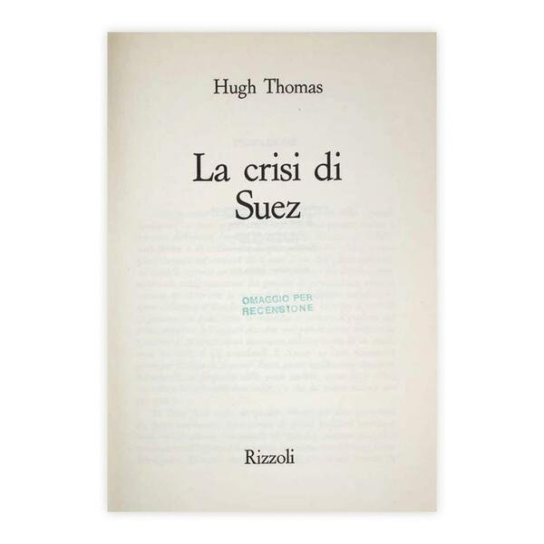 Autore: Hugh Thomas  Titolo: La Crisi di Suez   Edizione: Prima Edizione Rizzoli 1969 Dimensioni: 16 x 22,5 cm c.a. Peso: 0,588 kg  Pagine: 267 Copertina: Cartonato buone condizioni