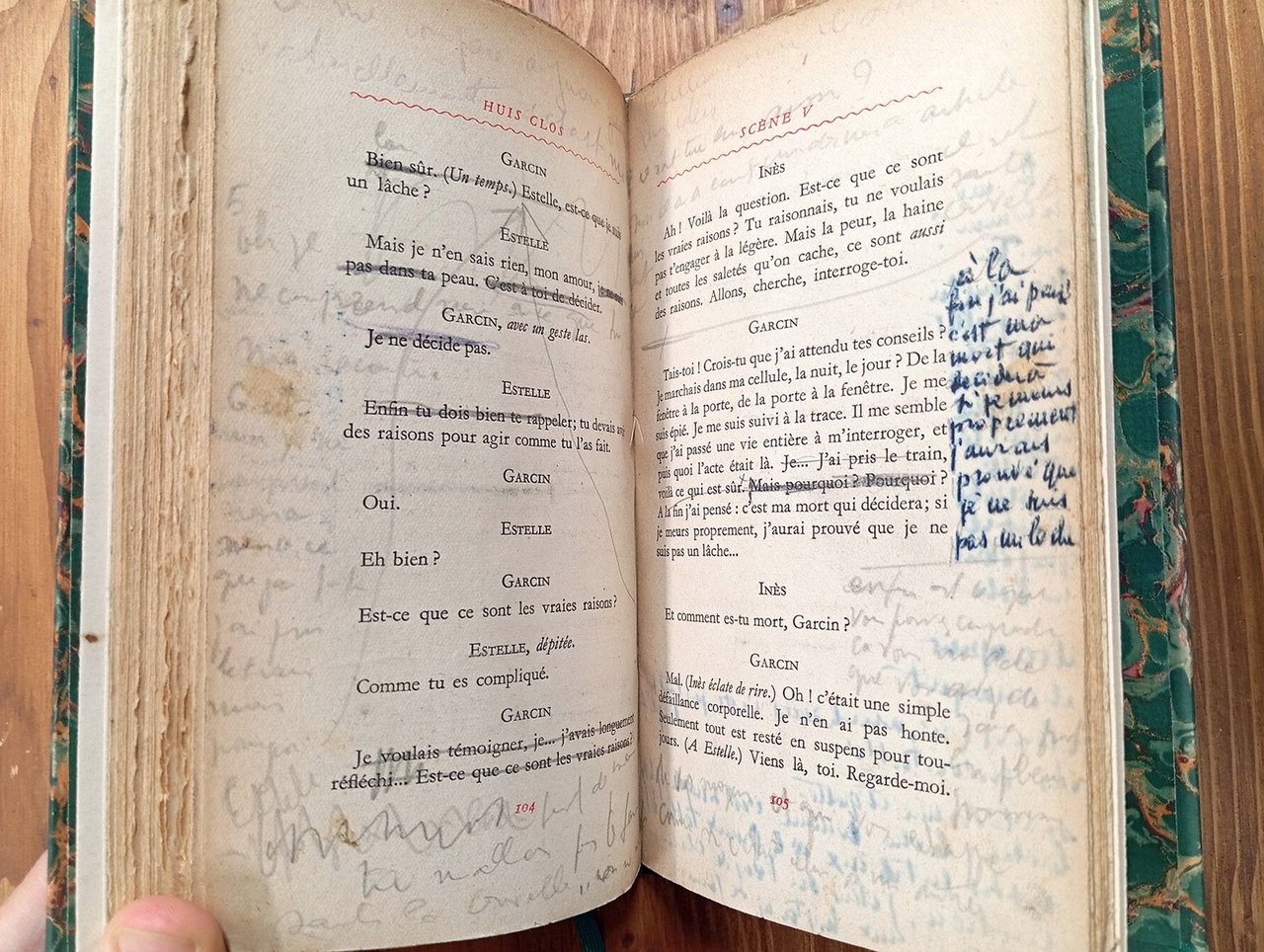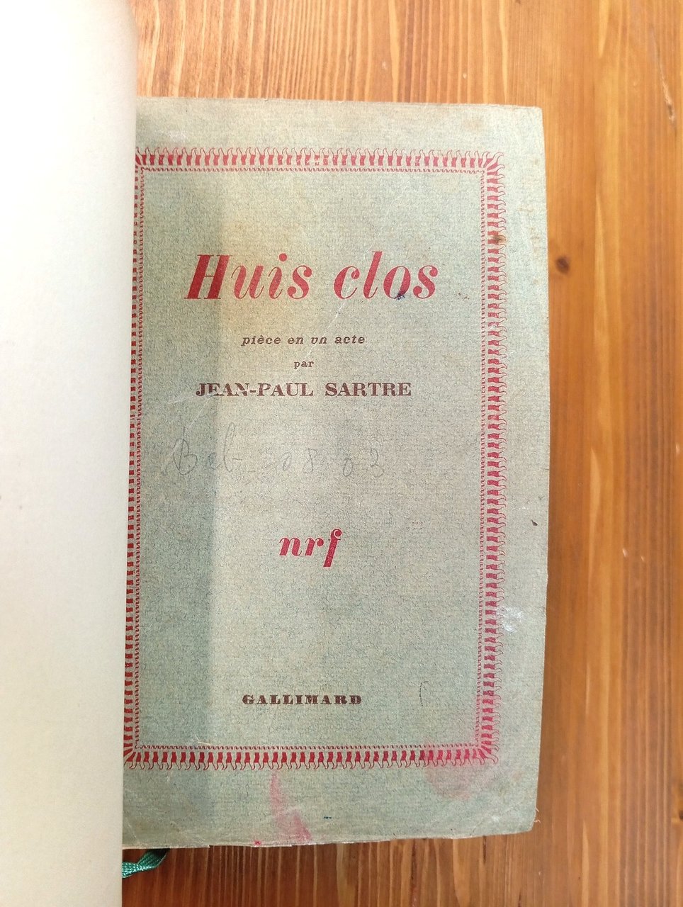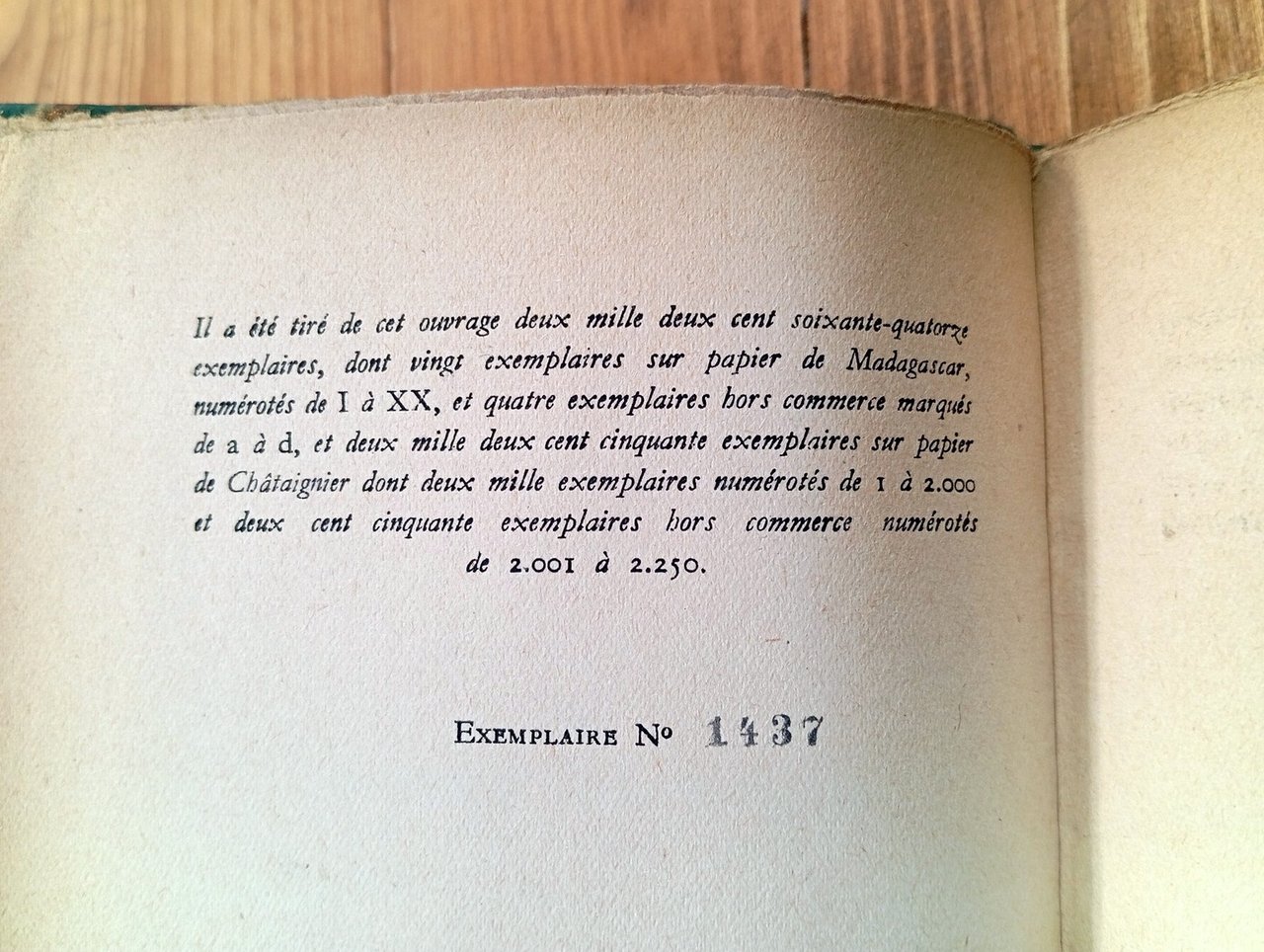 Edizione originale. "NRF [Nouvelle Revue Française]". Tiratura di 2250 esemplari numerati, il nostro è il n. 1437 - Volume rilegato in mezza pelle verde con titolo in oro al dorso, piatti e sguardie marmorizzati, 122 pagine. Conservati i piatti della brossura originale. Al suo interno la copia è molto vissuta, con numerosi interventi a matita e a penna nel testo e a margine (vedi immagini); legatura ottimamente conservata. Esemplare solo accettabile.