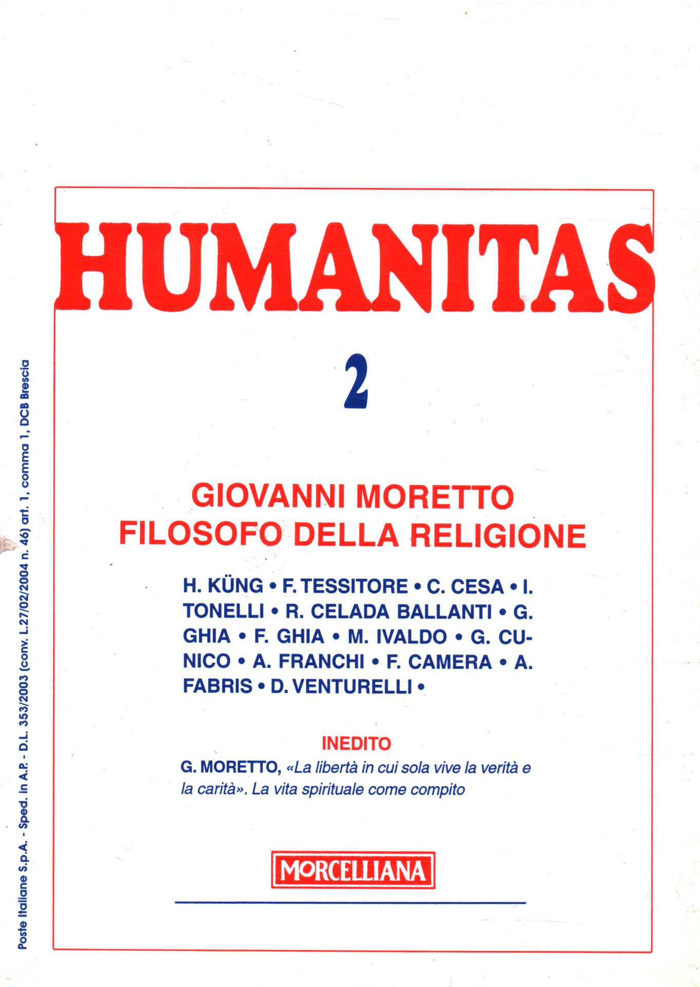 Humanitas (anno LXIII-n.2) Giovanni Moretto filosofo della relgione