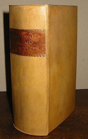 12mo (cm. 15), 284 pp. (segue) La povertà contenta descritta e dedicata a’ ricchi non mai contenti, in Venetia, per Francesco Armanni 1665, 347(1) pp. (segue) L’eternità consigliera, in Milano, appresso Lodovico Monza 1660, 6 cc.nn., 331(5) pp. Ottima legatura ‘900 in piena pergamena con titolo oro su tassello dipinto al ds. Margine superiore rifilato altrimenti bell’esemplare.