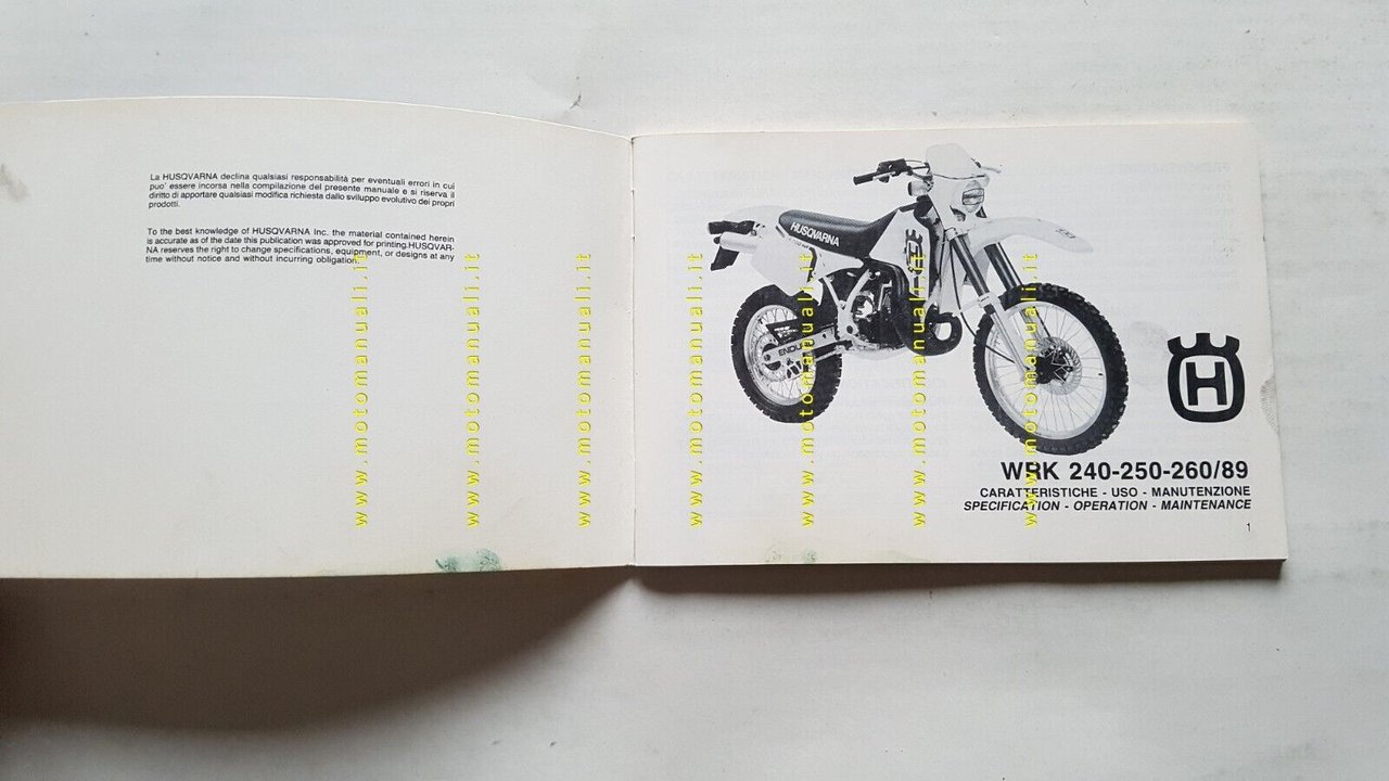 Husqvarna WR 240 250 260 1990 manuale uso manutenzione ITALIANO originale