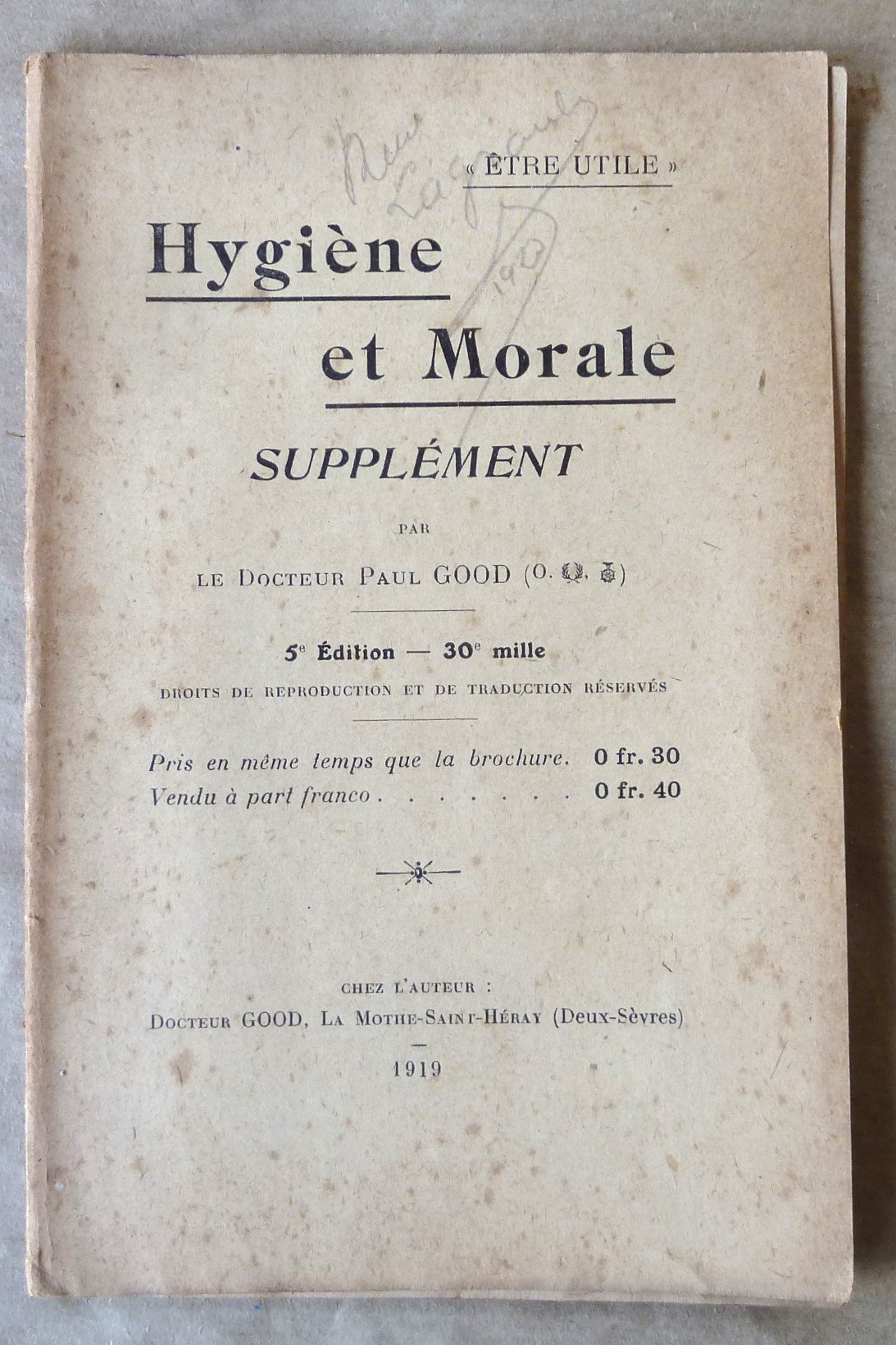 Hygiène et Morale. Supplément .
