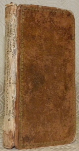 120x170mm, reliure plein veau blond de l’époque. Encadrements dorés sur les deux plats. Toutes tranches dorées. Manque le cuir sur tout la longuer du dos. Coiffes abimées. Intérieur en bon état.