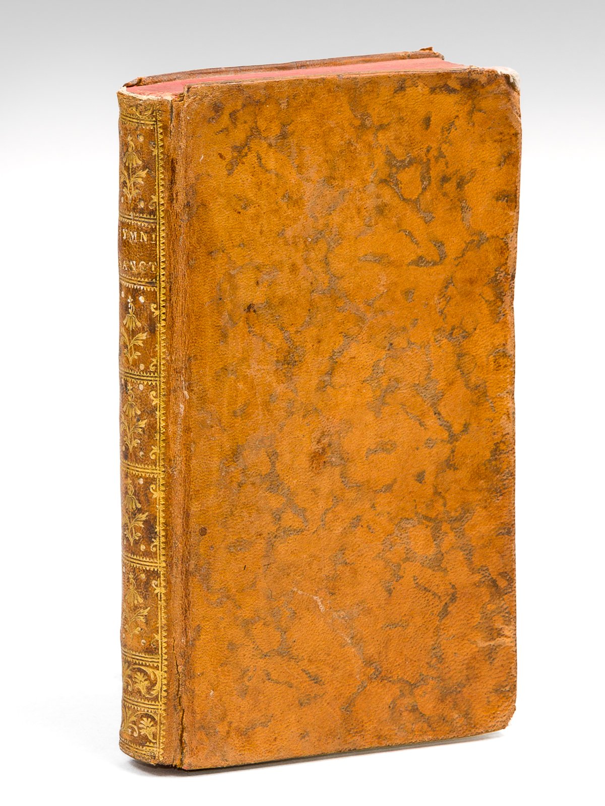 Auctore Santolio Victorino, Editio novissima, In qua Hymni omnes, quos Auctor usque ad mortem concinverat, reperiuntur, 1 vol. in-12 reliure de l'époque pleine basane marbrée, Ex Officina Westeniana, Amstelodami [ Amsterdam ], 1760, 24-256 pp. et 3 ff. n. ch. Eminent latiniste, Jean de Santeul (1630-1697) fut croqué par la Bruyère sous le personnage de Théodas. D'après Saint-Simon qui relate la chose dans ses Mémoires, il mourut victime d'une mauvaise plaisanterie du Duc de Bourbon qui avait mis du tabac dans son vin "pour voir ce qui arriverait". Etat très satisfaisant (restauration au second plat, coins frottés, coiffe sup. arasée)