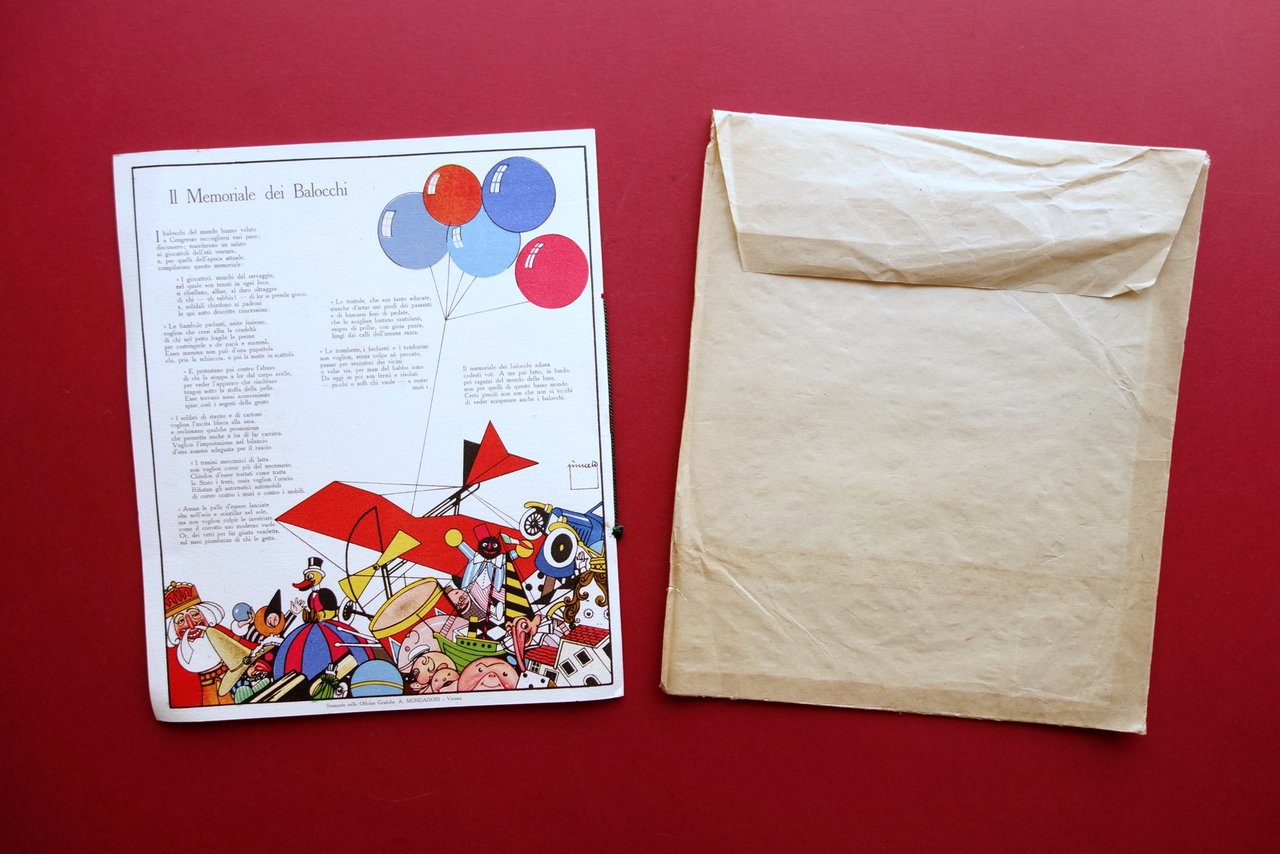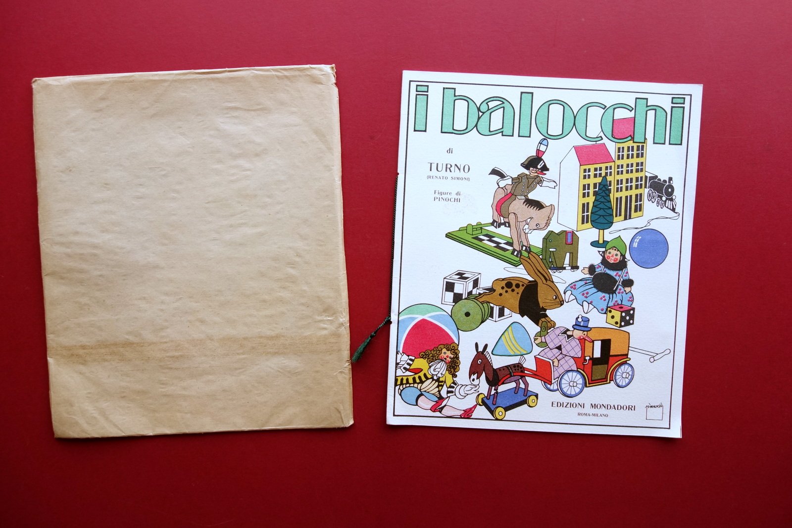 Turno (Renato Simoni), i Balocchi di Turno (Renato Simoni) figure di Pinochi Mondadori, Milano, s. d. (anni '20 del Novecento); cm 32x26,5; pp. 8 non num., tutte con bellissime ill. a colori di Pinochi. Legatura con cordella al dorso. Esemplare corredato della busta cartacea originale (vedi foto). Condizioni di conservazione Molto ben conservato, poco sfogliato; angoli dell'esemplare con minimi accenni di piega; copertina e ultima pagina con poche pressoché trascurabili bruniture. Interni ottimi, freschi. Busta cartacea originale ben conservata con pochi piccoli strappetti ai margini e agli angoli. Esemplare molto ben conservato. Bellissime le illustrazioni di Pinochi. SC03.D17967 N