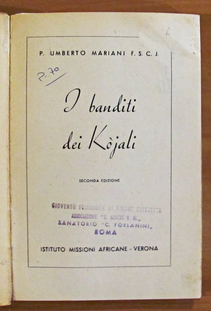 Illustrazioni in b/n n.t. a piena pagina di L. Edel. Ed. Istituto Missioni Africane - Verona, II edizione, 1940 circa. Brossura editoriale con piccoli appunti a penna in antiporta e timbro della "Gioventù Femminile di Associazione Cattolica S.Agnese V. M. Sanatorio C. Forlanini, Roma" al frontespizio e a qualche pagina interna. 12,5x18; pp.247. OTTIMO STATO , Ottimo (Fine)